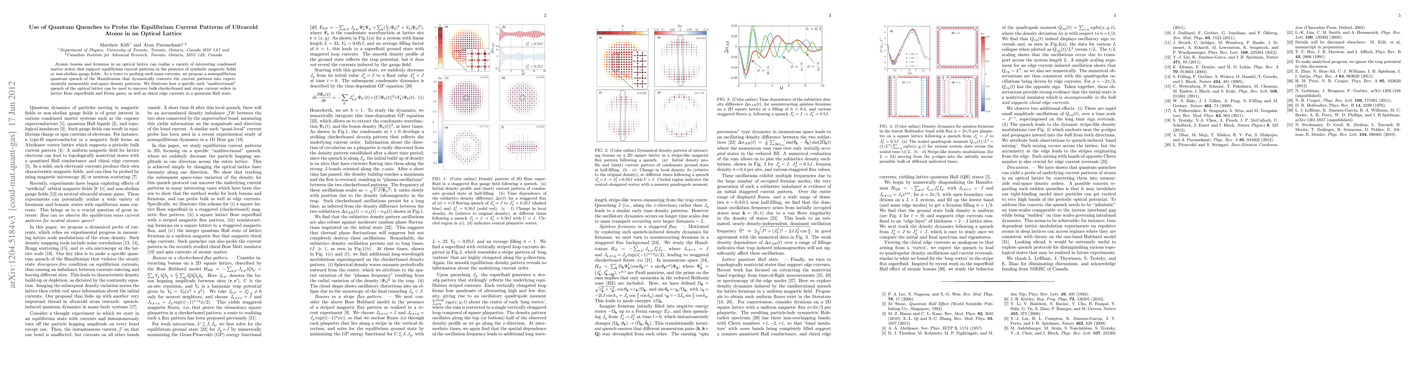 Atomic bosons and fermions in an optical lattice can realize a variety of interesting condensed matter states that support equilibrium current patterns in the presence of synthetic magnetic fields or non-abelian gauge fields. As a route to probing such mass currents, we propose a nonequilibrium quantum quench of the Hamiltonian that dynamically converts the current patterns into experimentally measurable real-space density patterns. We illustrate how a specific such "unidirectional" quench of the optical lattice can be used to uncover checkerboard and stripe current orders in lattice Bose superfluids and Fermi gases, as well as chiral edge currents in an integer quantum Hall state.