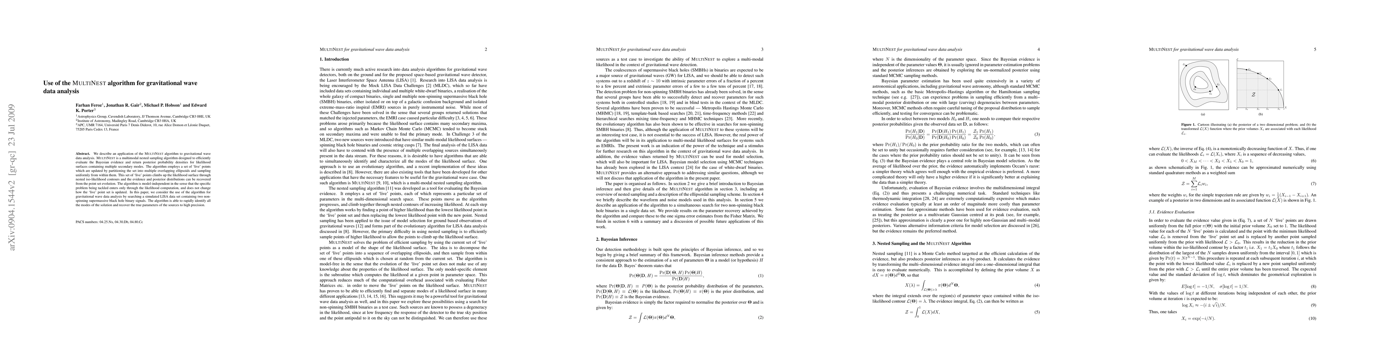 This paper applies the MultiNest algorithm, a multimodal nested sampling method, to analyze gravitational wave data from a simulated LISA dataset, successfully identifying and precisely recovering the parameters of two non-spinning supermassive black hole binaries. The algorithm's model-independence and efficient likelihood surface exploration make it highly effective for this purpose.
