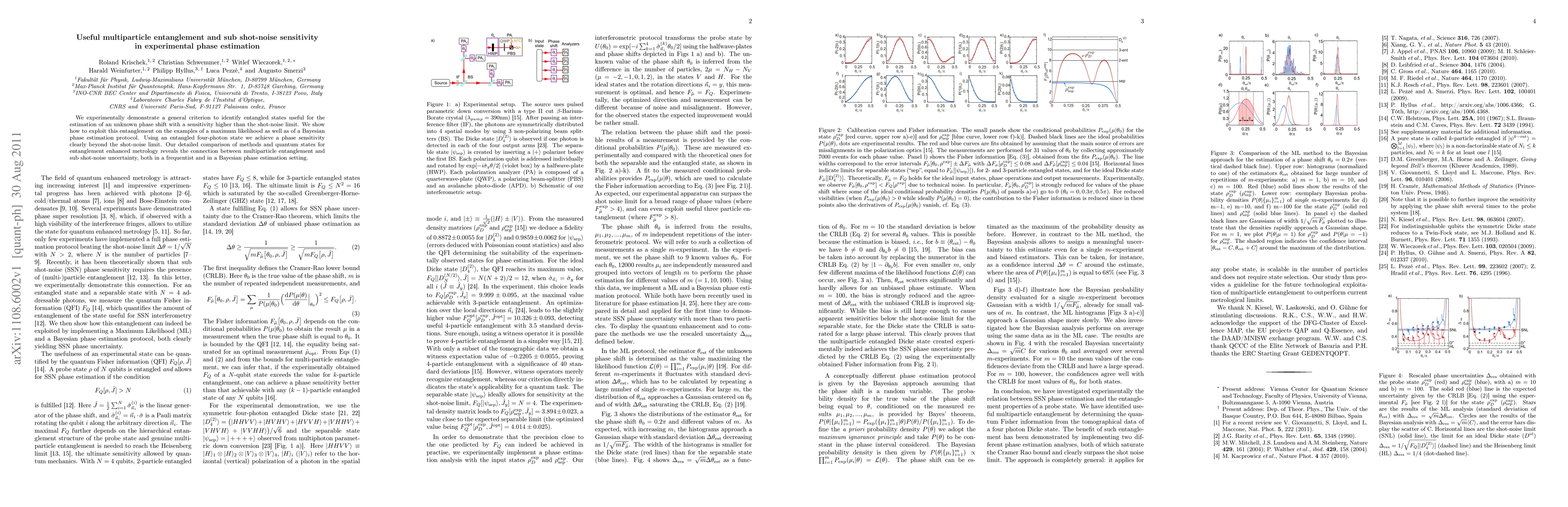 We experimentally demonstrate a general criterion to identify entangled states useful for the estimation of an unknown phase shift with a sensitivity higher than the shot-noise limit. We show how to exploit this entanglement on the examples of a maximum likelihood as well as of a Bayesian phase estimation protocol. Using an entangled four-photon state we achieve a phase sensitivity clearly beyond the shot-noise limit. Our detailed comparison of methods and quantum states for entanglement enhanced metrology reveals the connection between multiparticle entanglement and sub-shot-noise uncertainty, both in a frequentist and in a Bayesian phase estimation setting.