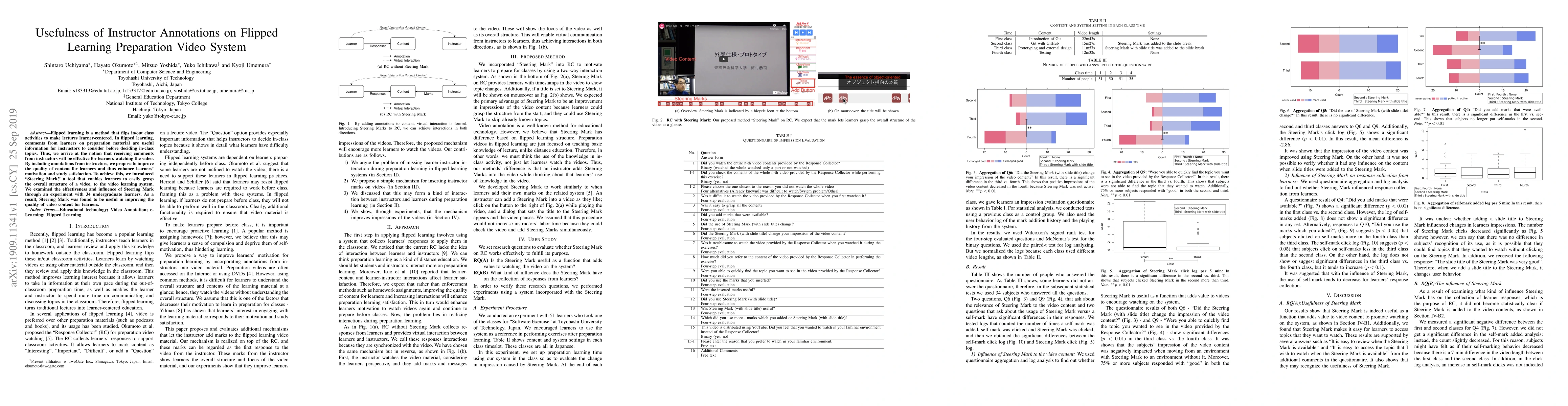 This study explores how instructor annotations, implemented via the "Steering Mark" tool, enhance flipped learning video systems by improving content quality and boosting learner motivation and satisfaction. Experimental results with 34 undergraduates indicate that Steering Mark effectively aids learners in understanding video structure.