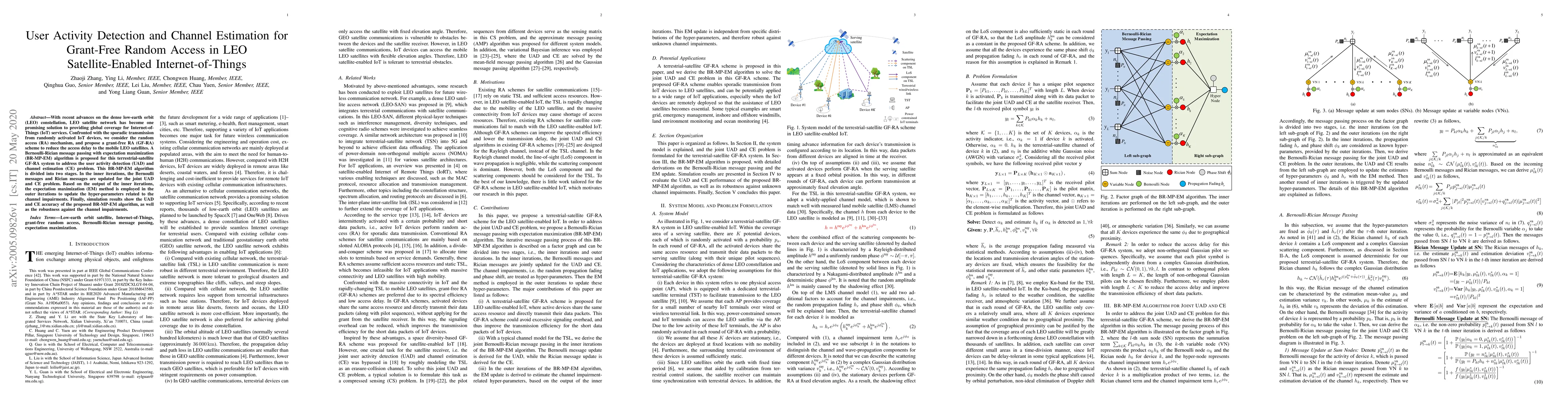 This paper proposes a grant-free random access scheme to reduce access delay for IoT devices in LEO satellite networks, employing a Bernoulli-Rician message passing with expectation maximization algorithm for user activity detection and channel estimation. Simulation results demonstrate the algorithm's accuracy and robustness against channel impairments.