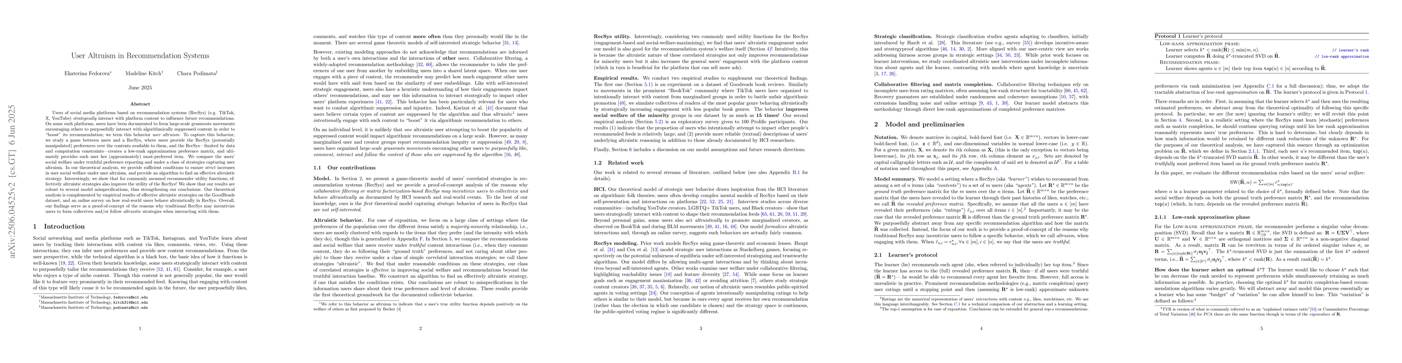 This research is important as it highlights the unintended consequences of current recommendation systems, which may incentivize users to engage in altruistic behaviors to influence content recommendations. It has the potential to inform the design of more equitable and user-centric recommendation algorithms.