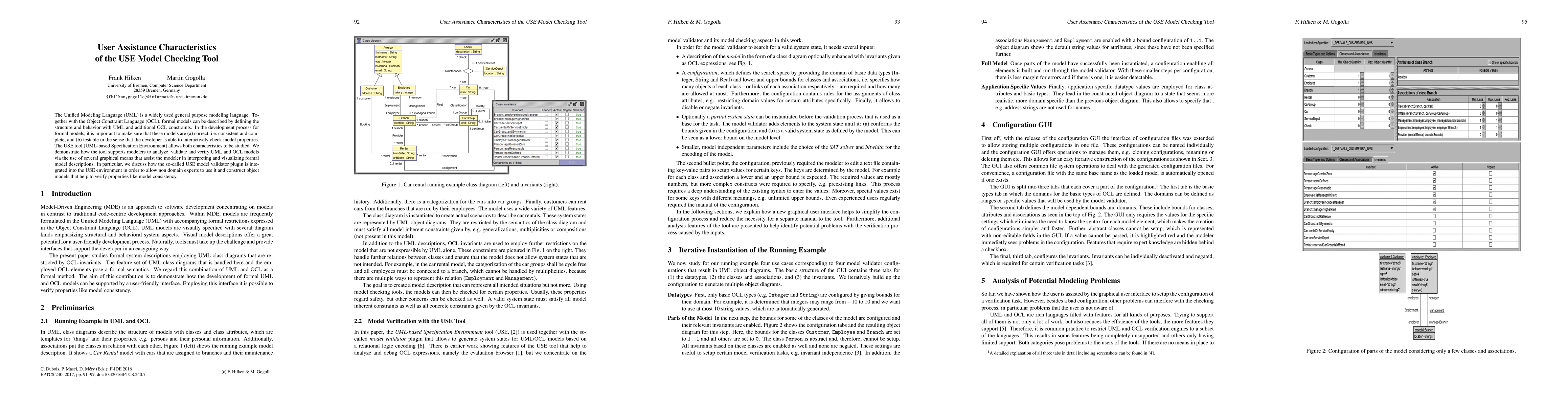 The Unified Modeling Language (UML) is a widely used general purpose modeling language. Together with the Object Constraint Language (OCL), formal models can be described by defining the structure and behavior with UML and additional OCL constraints. In the development process for formal models, it is important to make sure that these models are (a) correct, i.e. consistent and complete, and (b) testable in the sense that the developer is able to interactively check model properties. The USE tool (UML-based Specification Environment) allows both characteristics to be studied. We demonstrate how the tool supports modelers to analyze, validate and verify UML and OCL models via the use of several graphical means that assist the modeler in interpreting and visualizing formal model descriptions. In particular, we discuss how the so-called USE model validator plugin is integrated into the USE environment in order to allow non domain experts to use it and construct object models that help to verify properties like model consistency.