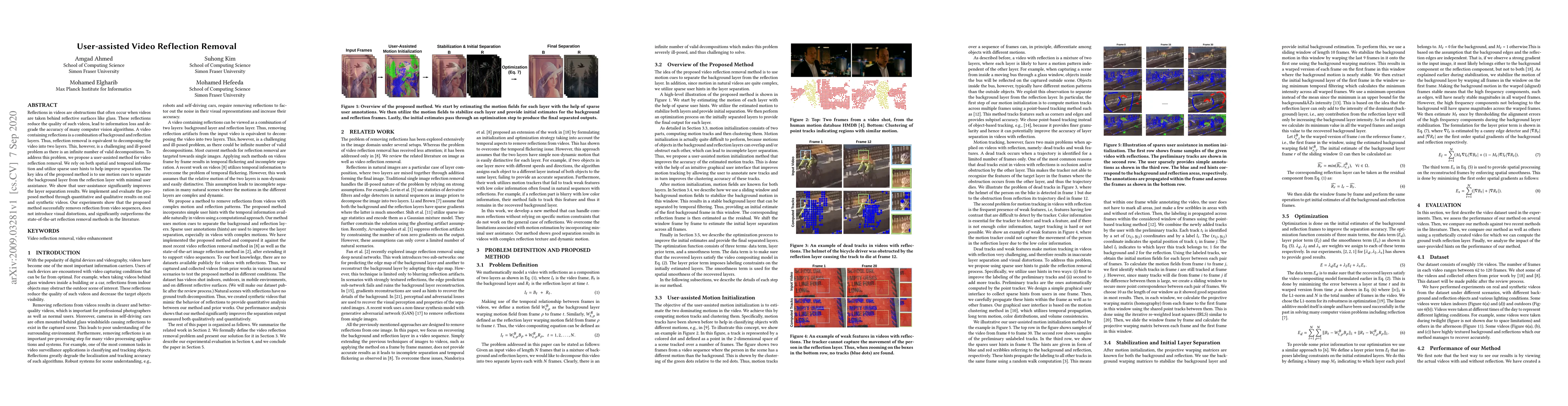 A new video reflection removal method uses motion cues to separate background from reflections with minimal user assistance, improving results over existing methods.