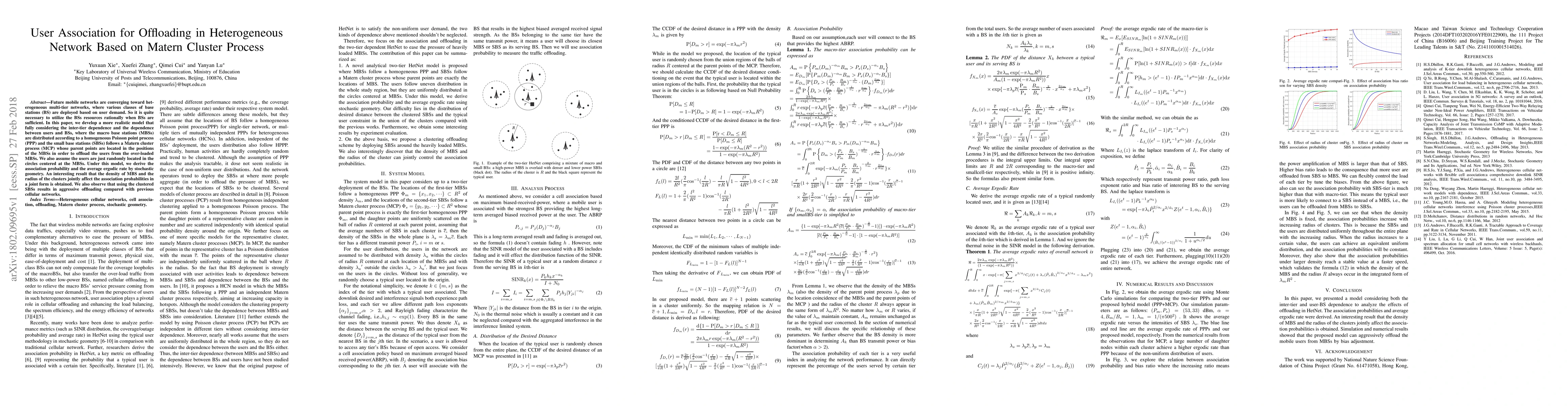 Future mobile networks are converging toward heterogeneous multi-tier networks, where various classes of base stations (BS) are deployed based on user demand. So it is quite necessary to utilize the BSs resources rationally when BSs are sufficient. In this paper, we develop a more realistic model that fully considering the inter-tier dependence and the dependence between users and BSs, where the macro base stations (MBSs) are distributed according to a homogeneous Poisson point process (PPP) and the small base stations (SBSs) follows a Matern cluster process (MCP) whose parent points are located in the positions of the MBSs in order to offload the users from the over-loaded MBSs. We also assume the users are just randomly located in the circles centered at the MBSs. Under this model, we derive the association probability and the average ergodic rate by stochastic geometry. An interesting result that the density of MBS and the radius of the clusters jointly affect the association probabilities in a joint form is obtained. We also observe that using the clustered SBSs results in aggressive offloading compared with previous cellular networks.