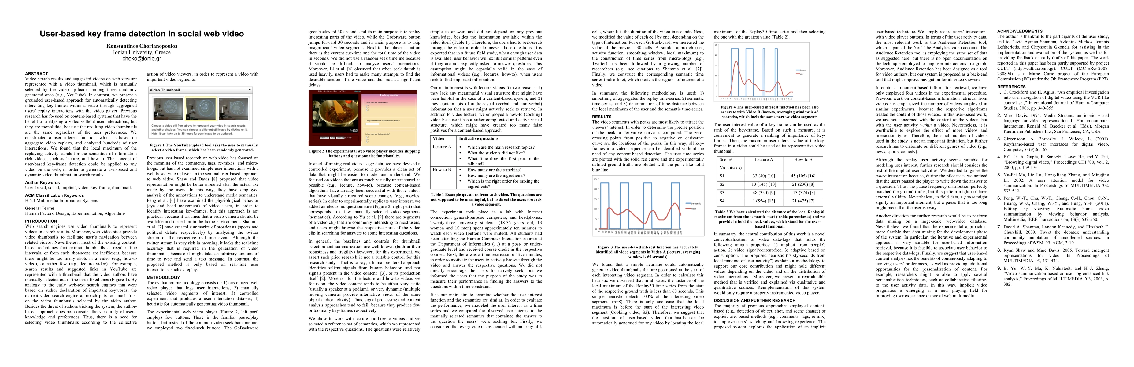 Video search results and suggested videos on web sites are represented with a video thumbnail, which is manually selected by the video up-loader among three randomly generated ones (e.g., YouTube). In contrast, we present a grounded user-based approach for automatically detecting interesting key-frames within a video through aggregated users' replay interactions with the video player. Previous research has focused on content-based systems that have the benefit of analyzing a video without user interactions, but they are monolithic, because the resulting video thumbnails are the same regardless of the user preferences. We constructed a user interest function, which is based on aggregate video replays, and analyzed hundreds of user interactions. We found that the local maximum of the replaying activity stands for the semantics of information rich videos, such as lecture, and how-to. The concept of user-based key-frame detection could be applied to any video on the web, in order to generate a user-based and dynamic video thumbnail in search results.