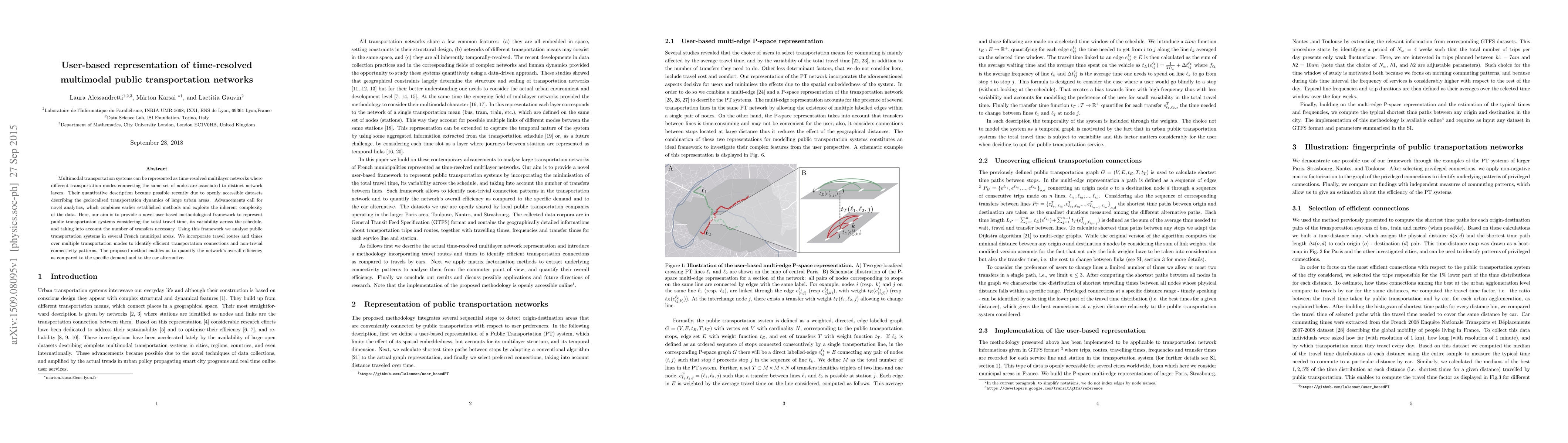This paper introduces a user-based methodological framework for representing time-resolved multimodal public transportation networks, focusing on total travel time, variability, and transfer counts. The framework is applied to French municipal areas to analyze efficient transportation connections and overall network efficiency relative to specific demands and car alternatives.