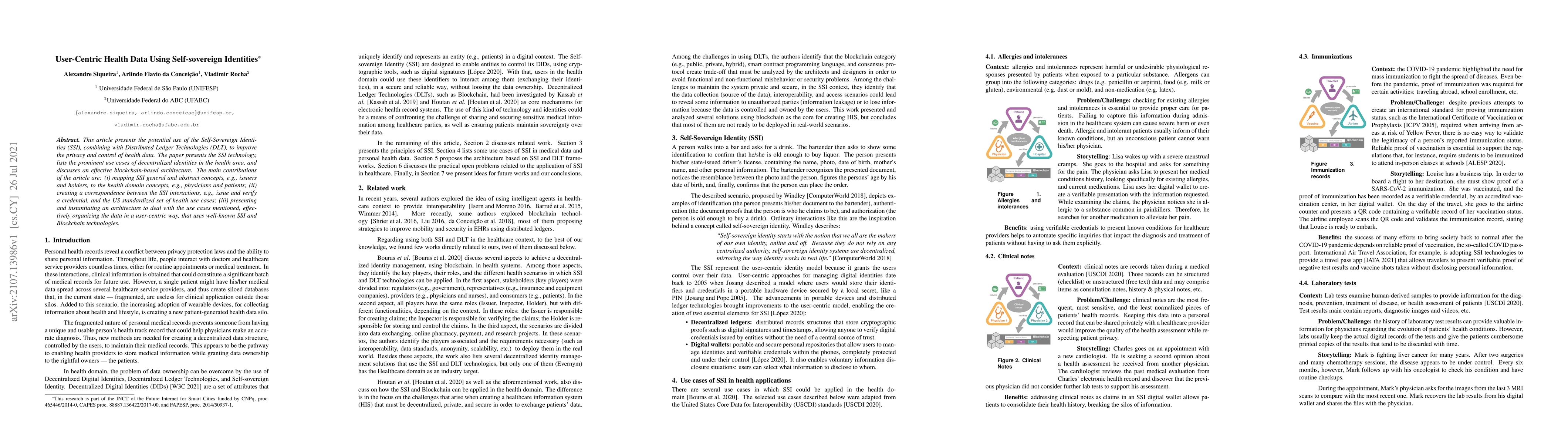 This paper explores the use of Self-Sovereign Identities (SSI) combined with Distributed Ledger Technologies (DLT) to enhance health data privacy and control. It maps SSI concepts to health domain roles and presents a blockchain-based architecture for user-centric health data management.