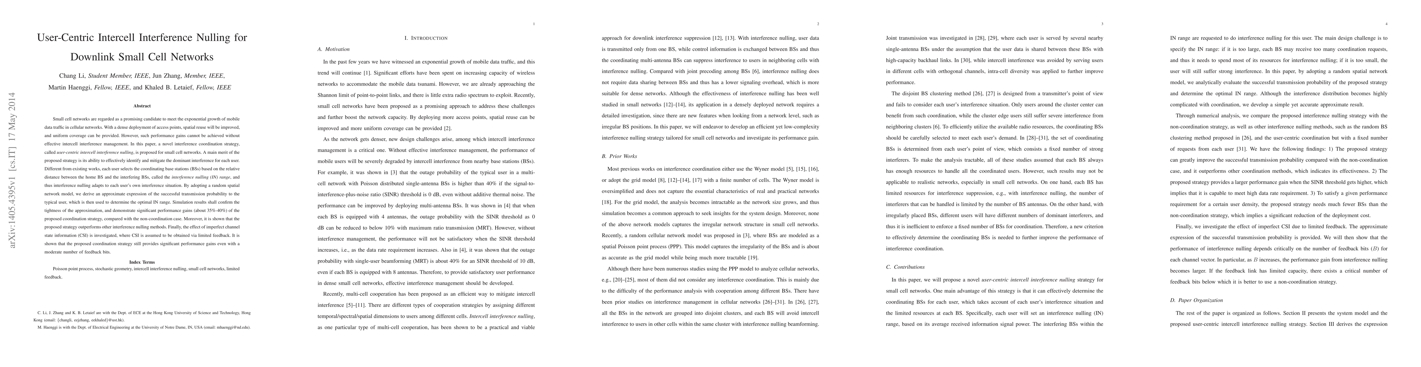This paper proposes a user-centric intercell interference nulling strategy for small cell networks, enabling each user to select coordinating base stations based on interference nulling range, leading to significant performance improvements (35%-40%) over non-coordination methods. The strategy also maintains effectiveness despite imperfect channel state information obtained via limited feedback.