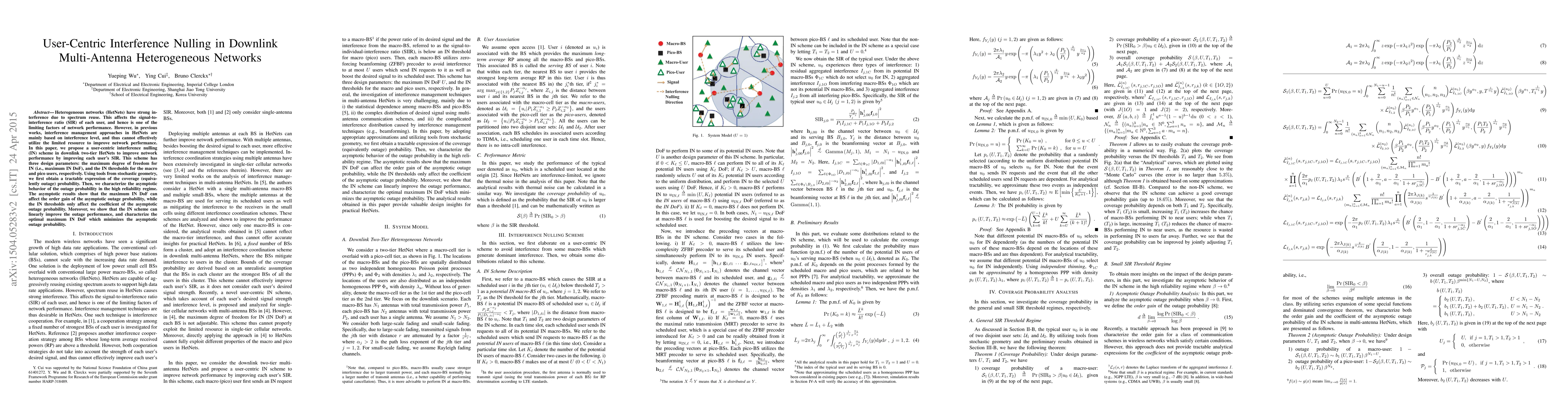 This paper proposes a user-centric interference nulling scheme in downlink multi-antenna heterogeneous networks to enhance signal-to-interference ratio (SIR) and network performance. The scheme optimizes interference management based on user-specific parameters, demonstrating improved outage performance and characterizing the optimal maximum degree of freedom for interference nulling.