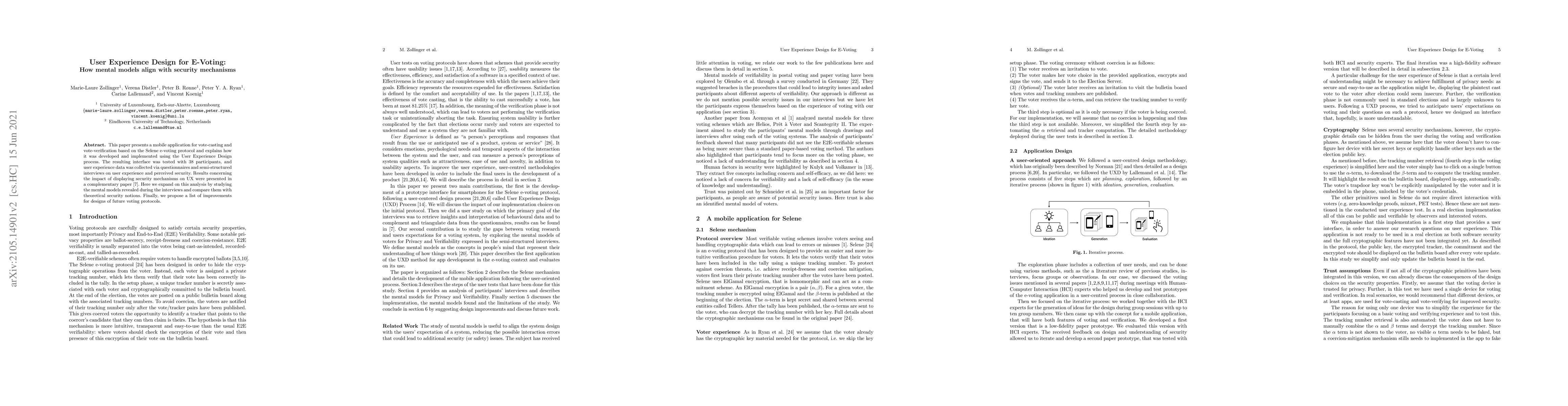 This paper presents a mobile application for vote-casting and vote-verification based on the Selene e-voting protocol and explains how it was developed and implemented using the User Experience Design process. The resulting interface was tested with 38 participants, and user experience data was collected via questionnaires and semi-structured interviews on user experience and perceived security. Results concerning the impact of displaying security mechanisms on UX were presented in a complementary paper. Here we expand on this analysis by studying the mental models revealed during the interviews and compare them with theoretical security notions. Finally, we propose a list of improvements for designs of future voting protocols.