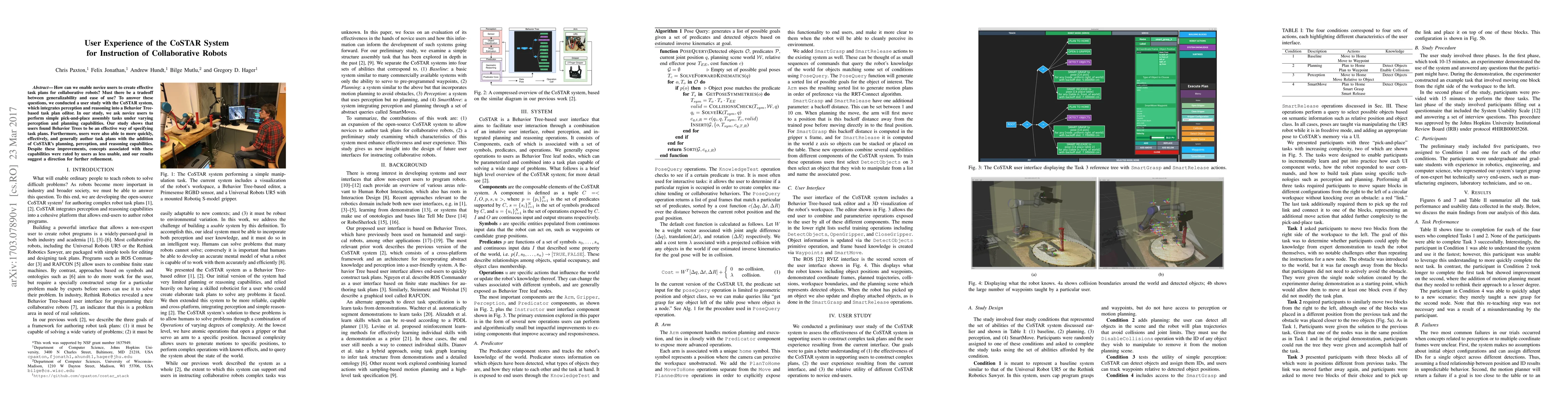 How can we enable novice users to create effective task plans for collaborative robots? Must there be a tradeoff between generalizability and ease of use? To answer these questions, we conducted a user study with the CoSTAR system, which integrates perception and reasoning into a Behavior Tree-based task plan editor. In our study, we ask novice users to perform simple pick-and-place assembly tasks under varying perception and planning capabilities. Our study shows that users found Behavior Trees to be an effective way of specifying task plans. Furthermore, users were also able to more quickly, effectively, and generally author task plans with the addition of CoSTAR's planning, perception, and reasoning capabilities. Despite these improvements, concepts associated with these capabilities were rated by users as less usable, and our results suggest a direction for further refinement.