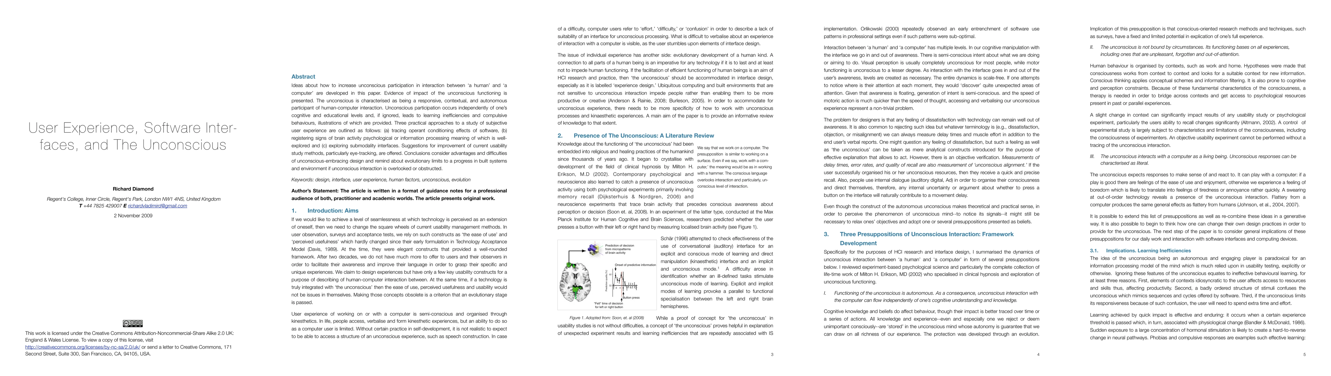 Ideas about how to increase the unconscious participation in interaction between 'a human' and 'a computer' are developed in this paper. Evidence of impact of the unconscious functioning is presented. The unconscious is characterised as being a responsive, contextual, and autonomous participant of human-computer interaction. The unconscious participation occurs independently of one's cognitive and educational levels and, if ignored, leads to learning inefficiencies and compulsive behaviours, illustrations of which are provided. Three practical approaches to a study of subjective user experience are outlined as follows: (a) tracing operant conditioning effects of software, (b) registering signs of brain activity psychological or information processing meaning of which is well-explored and (c) exploring submodality interfaces. Implications for improvement of current usability study methods, such as eye-tracking, are generally considered. Conclusions consider advantages and disadvantages of unconscious-embracing design and remind about a loss of human evolutionary choices if unconscious participation is ignored, complicated or blocked in interaction with computer interfaces and built environment.
