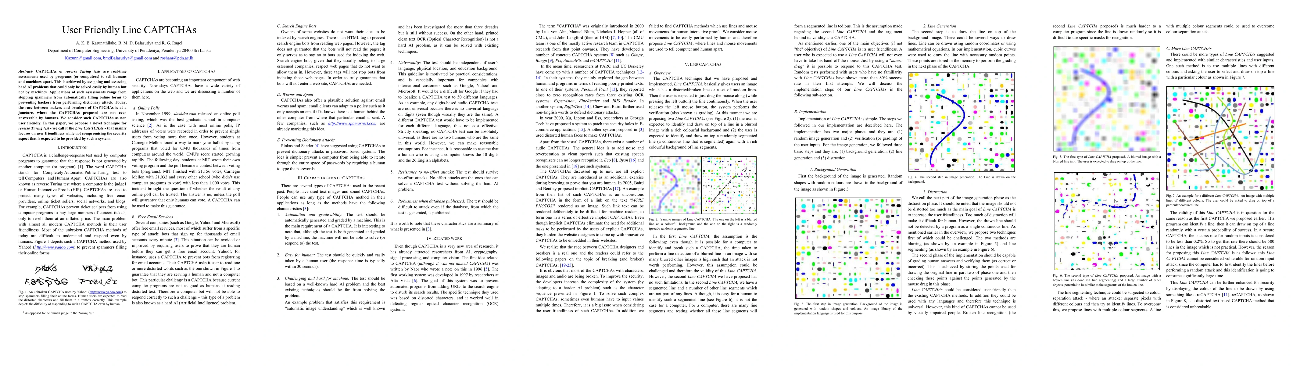 Researchers propose Line CAPTCHAs, a novel technique for reverse Turing tests that focuses on user friendliness while maintaining security, aiming to create more accessible assessments for humans and machines.
