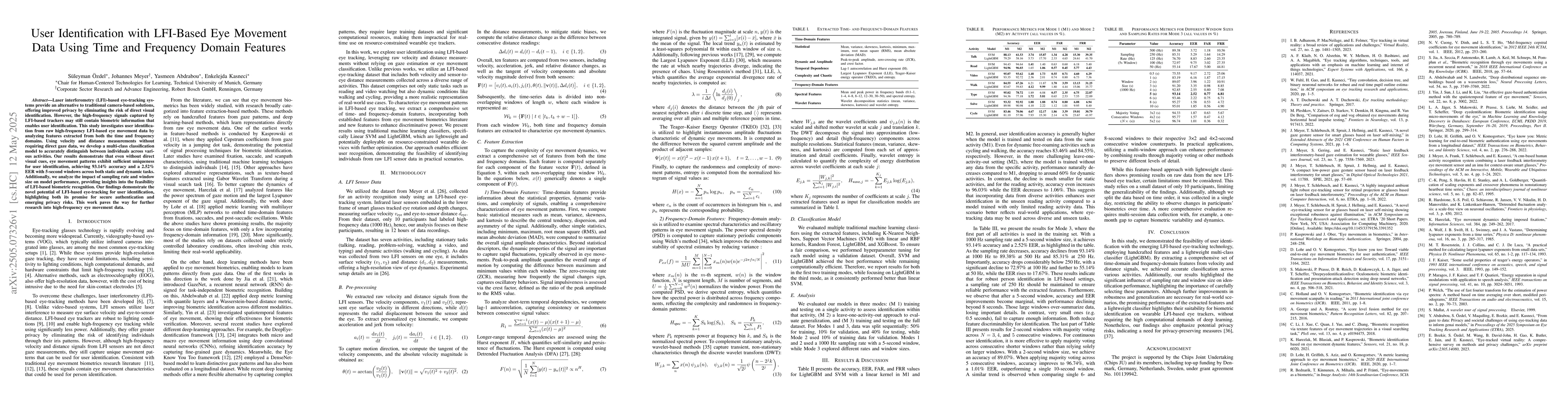 This work is novel in demonstrating user identification feasibility using high-frequency LFI-based eye-tracking data without relying on direct gaze information, opening new avenues for privacy-preserving biometric recognition.