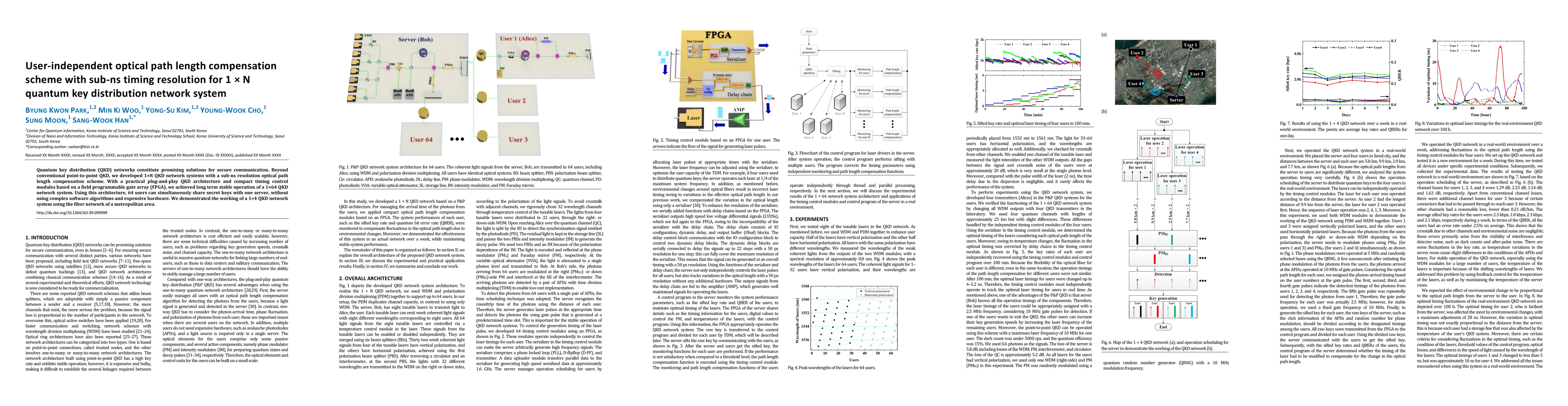Quantum key distribution (QKD) networks constitute promising solutions for secure communication. Beyond conventional point-to-point QKD, we developed 1xN QKD network systems with a sub-ns resolution optical path length compensation scheme. With a practical plug-and-play QKD architecture and compact timing control modules based on a field programmable gate array (FPGA), we achieved long term stable operation of a 1x64 QKD network system. Using this architecture, 64 users can simultaneously share secret keys with one server, without using complex software algorithms and expensive hardware. We demonstrated the working of a 1x4 QKD network system using the fiber network of a metropolitan area.
