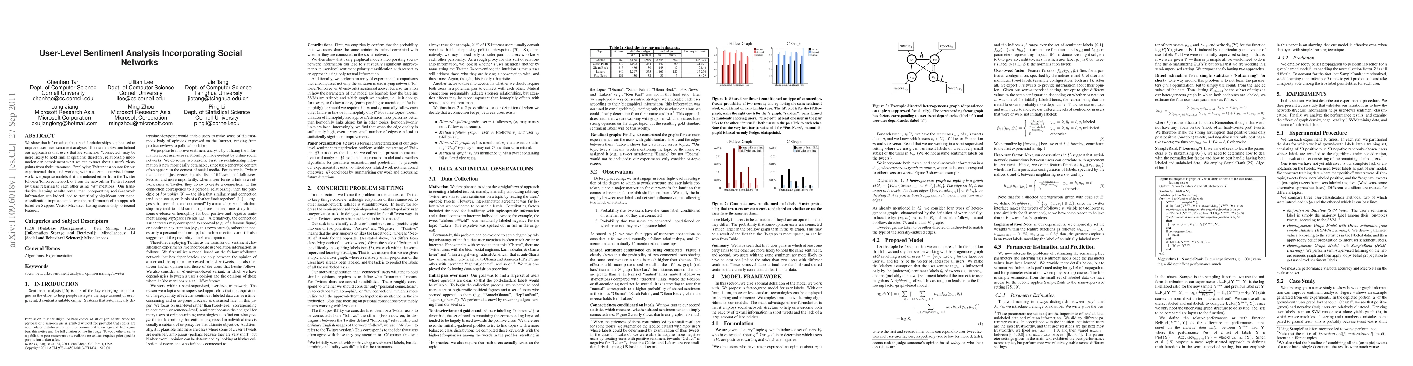 We show that information about social relationships can be used to improve user-level sentiment analysis. The main motivation behind our approach is that users that are somehow "connected" may be more likely to hold similar opinions; therefore, relationship information can complement what we can extract about a user's viewpoints from their utterances. Employing Twitter as a source for our experimental data, and working within a semi-supervised framework, we propose models that are induced either from the Twitter follower/followee network or from the network in Twitter formed by users referring to each other using "@" mentions. Our transductive learning results reveal that incorporating social-network information can indeed lead to statistically significant sentiment-classification improvements over the performance of an approach based on Support Vector Machines having access only to textual features.