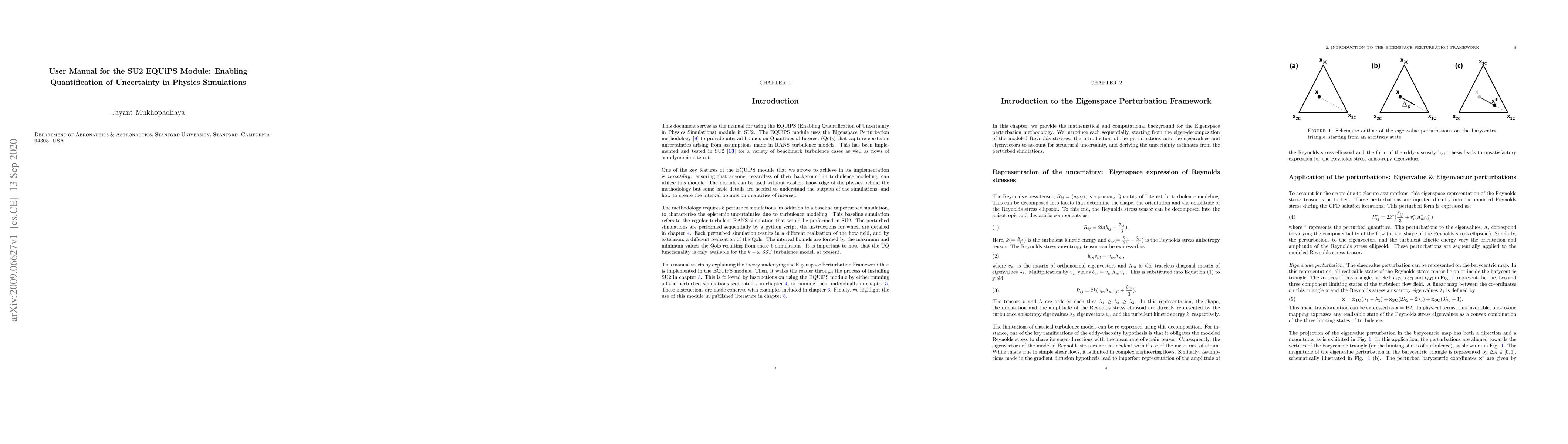 This document serves as the manual for using the EQUiPS (Enabling Quantification of Uncertainty in Physics Simulations) module in SU2. The EQUiPS module uses the Eigenspace Perturbation methodology to provide interval bounds on Quantities of Interest (QoIs) that capture epistemic uncertainties arising from assumptions made in RANS turbulence models. This has been implemented and tested in SU2 for a variety of benchmark turbulence cases as well as flows of aerodynamic interest.