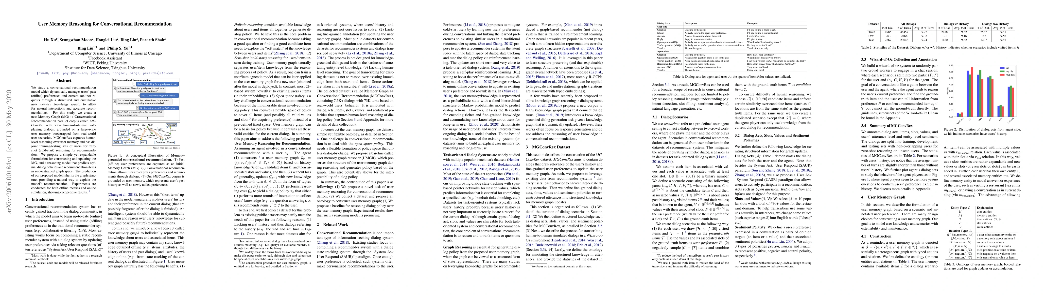 This research develops a conversational recommendation model that utilizes a Memory Graph to dynamically manage users' offline preferences and online requests, enabling natural interactions and accurate recommendations. The study introduces MGConvRex, a new corpus for training and testing, showcasing zero-shot reasoning capabilities. The proposed model predicts optimal dialog policies and recommendations while maintaining a structured graph for natural explanations.