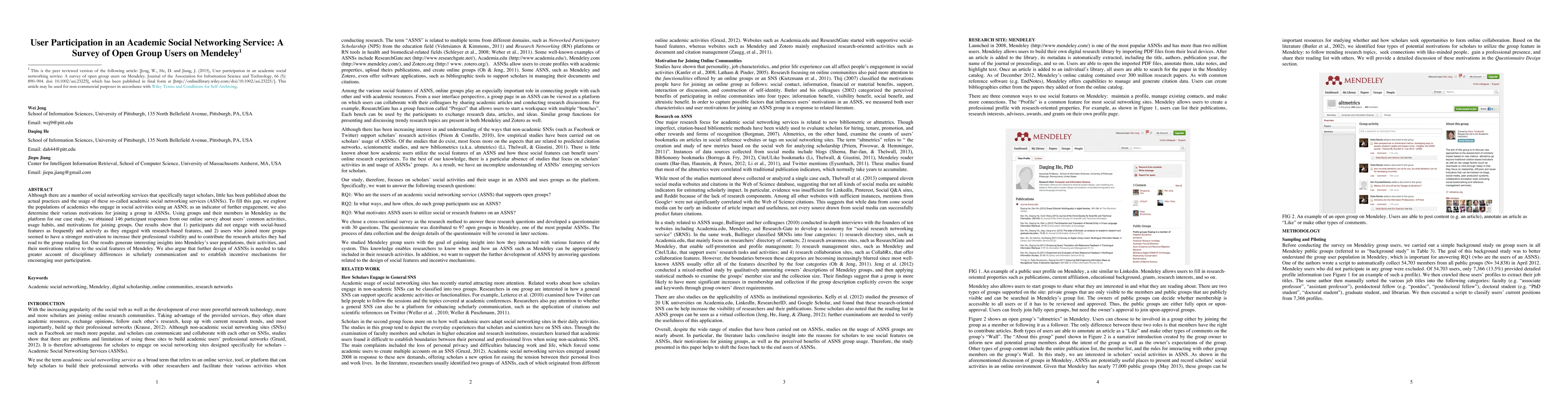 Although there are a number of social networking services that specifically target scholars, little has been published about the actual practices and the usage of these so-called academic social networking services (ASNSs). To fill this gap, we explore the populations of academics who engage in social activities using an ASNS; as an indicator of further engagement, we also determine their various motivations for joining a group in ASNSs. Using groups and their members in Mendeley as the platform for our case study, we obtained 146 participant responses from our online survey about users' common activities, usage habits, and motivations for joining groups. Our results show that 1) participants did not engage with social-based features as frequently and actively as they engaged with research-based features, and 2) users who joined more groups seemed to have a stronger motivation to increase their professional visibility and to contribute the research articles they had read to the group reading list. Our results generate interesting insights into Mendeley's user populations, their activities, and their motivations relative to the social features of Mendeley. We also argue that further design of ASNSs is needed to take greater account of disciplinary differences in scholarly communication and to establish incentive mechanisms for encouraging user participation.