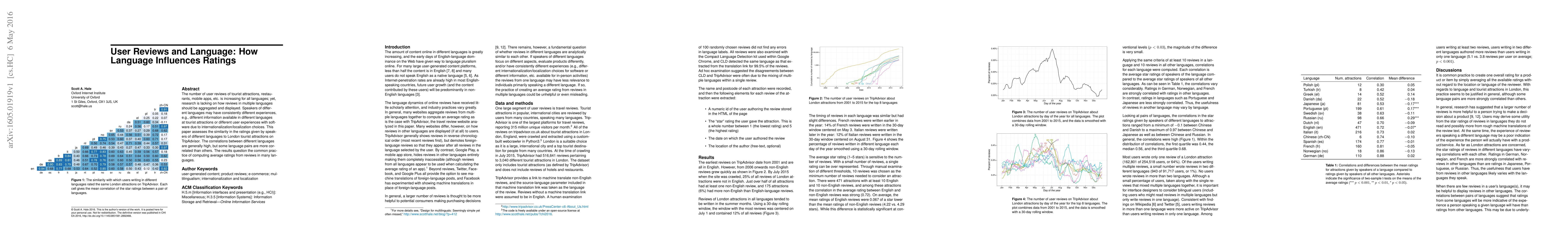 A study found that while correlations between language ratings for London tourist attractions were generally high, some language pairs showed stronger correlations than others, questioning the practice of averaging ratings from multiple languages.