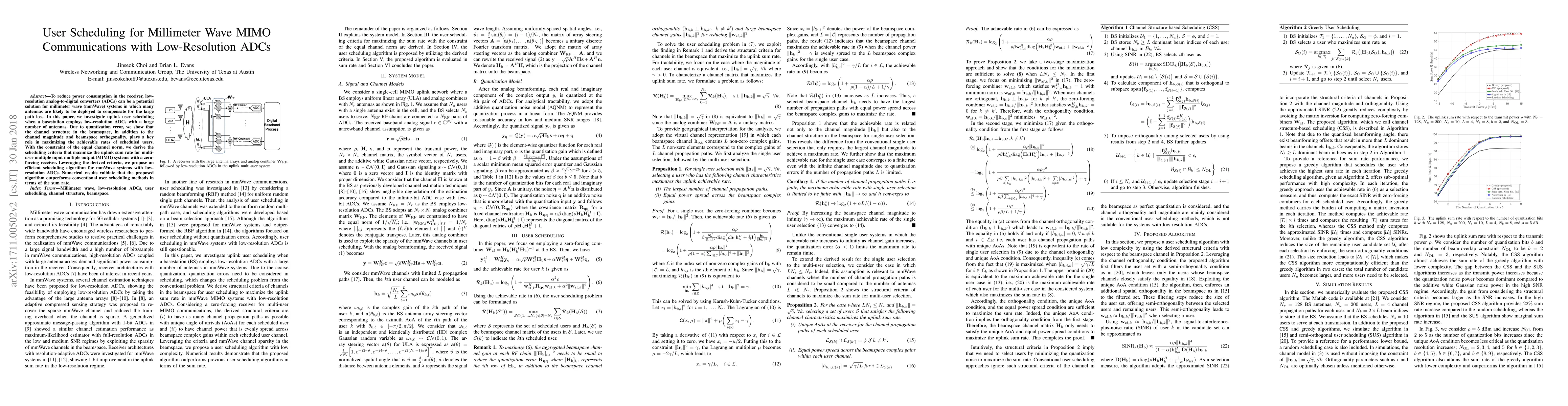 A novel scheduling algorithm for mmWave MIMO systems with low-resolution ADCs was proposed, leveraging the structural characteristics of channels in the beamspace to maximize achievable rates.