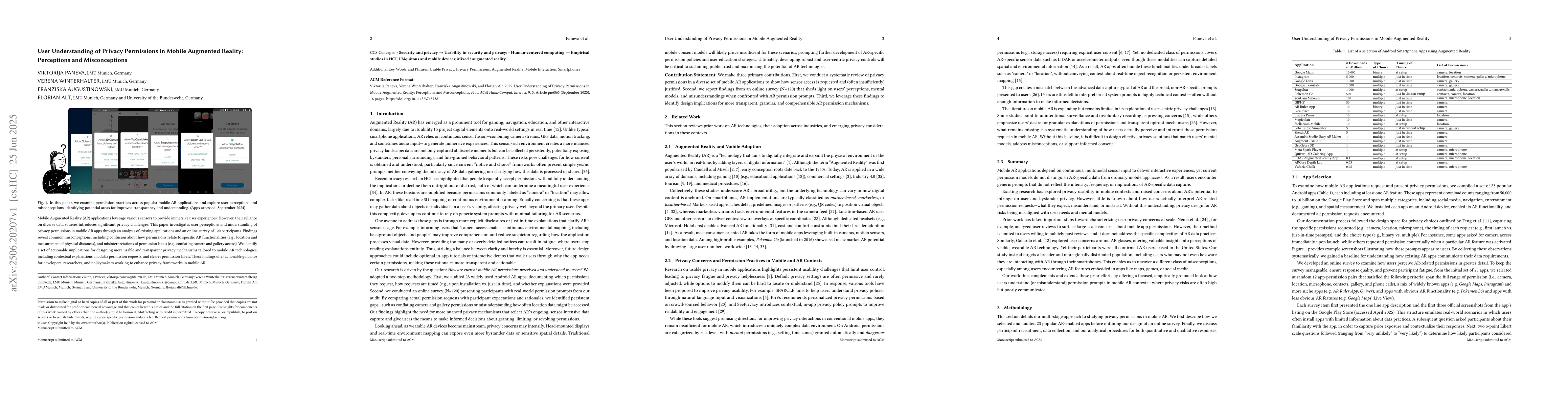 Mobile Augmented Reality (AR) applications leverage various sensors to provide immersive user experiences. However, their reliance on diverse data sources introduces significant privacy challenges. This paper investigates user perceptions and understanding of privacy permissions in mobile AR apps through an analysis of existing applications and an online survey of 120 participants. Findings reveal common misconceptions, including confusion about how permissions relate to specific AR functionalities (e.g., location and measurement of physical distances), and misinterpretations of permission labels (e.g., conflating camera and gallery access). We identify a set of actionable implications for designing more usable and transparent privacy mechanisms tailored to mobile AR technologies, including contextual explanations, modular permission requests, and clearer permission labels. These findings offer actionable guidance for developers, researchers, and policymakers working to enhance privacy frameworks in mobile AR.