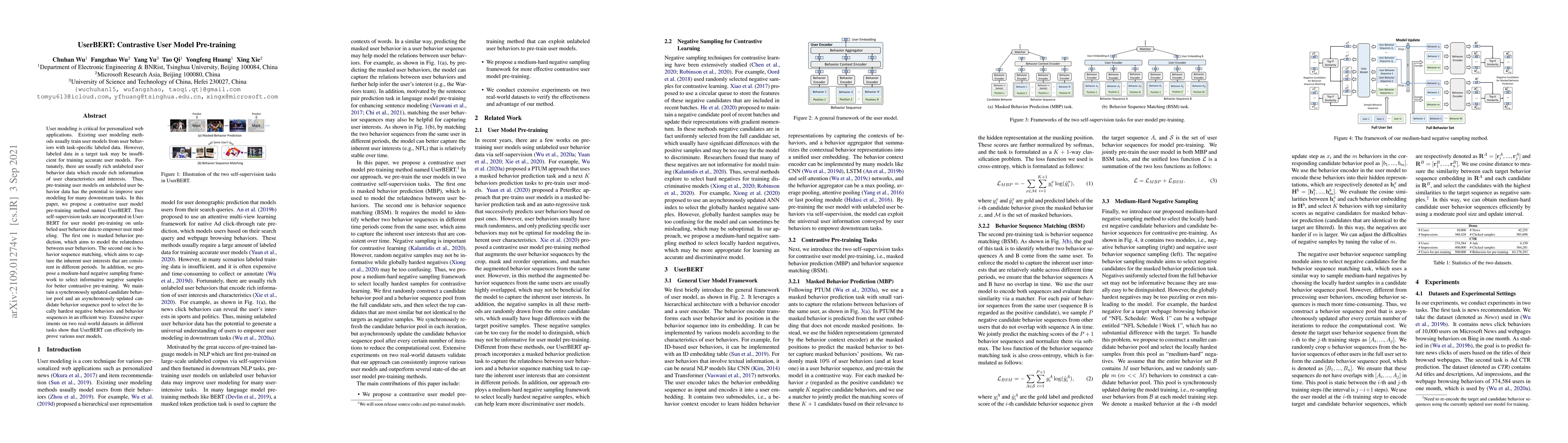 This paper proposes UserBERT, a method for pre-training user models on unlabeled user behavior data to improve personalized web applications. It achieves this through two self-supervision tasks that capture relatedness and consistency in user interests.