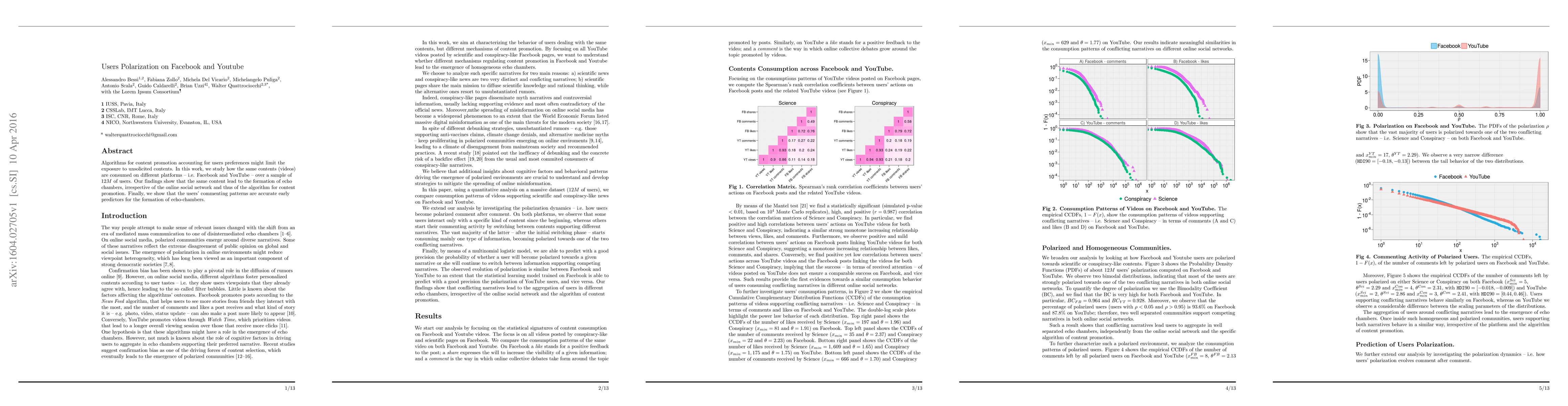On social media algorithms for content promotion, accounting for users preferences, might limit the exposure to unsolicited contents. In this work, we study how the same contents (videos) are consumed on different platforms -- i.e. Facebook and YouTube -- over a sample of $12M$ of users. Our findings show that the same content lead to the formation of echo chambers, irrespective of the online social network and thus of the algorithm for content promotion. Finally, we show that the users' commenting patterns are accurate early predictors for the formation of echo-chambers.