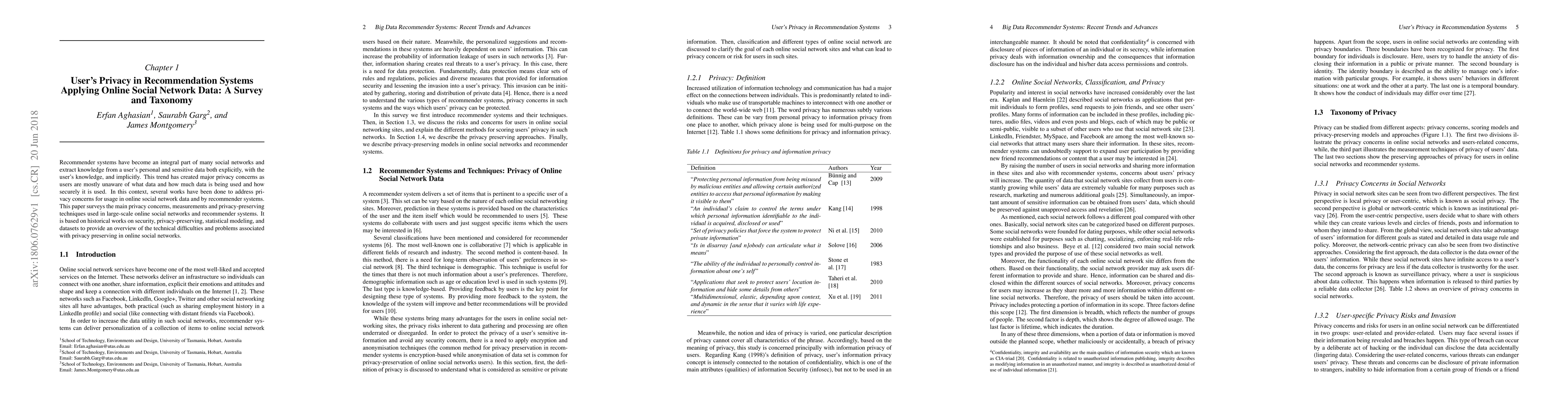 This paper surveys privacy concerns, measurements, and privacy-preserving techniques in recommender systems using online social network data, highlighting the technical challenges and historical works addressing these issues. It provides a taxonomy to understand the complexities of ensuring user privacy in such systems.