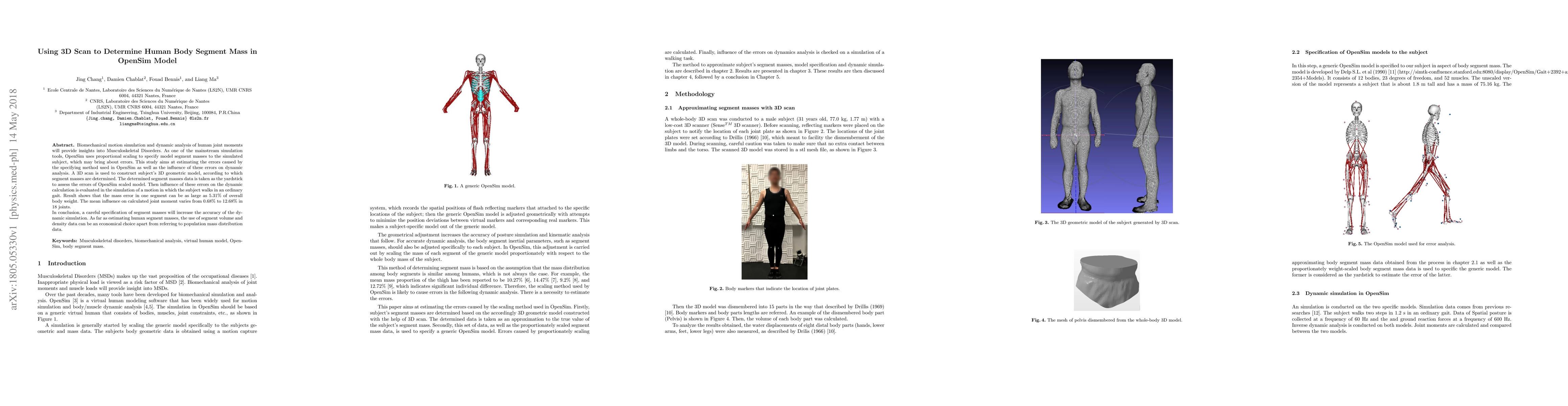 Biomechanical motion simulation and dynamic analysis of human joint moments will provide insights into Musculoskeletal Disorders. As one of the mainstream simulation tools, OpenSim uses proportional scaling to specify model segment masses to the simulated subject, which may bring about errors. This study aims at estimating the errors caused by the specifying method used in OpenSim as well as the influence of these errors on dynamic analysis. A 3D scan is used to construct subject's 3D geometric model, according to which segment masses are determined. The determined segment masses data is taken as the yardstick to assess the errors of OpenSim scaled model. Then influence of these errors on the dynamic calculation is evaluated in the simulation of a motion in which the subject walks in an ordinary gait. Result shows that the mass error in one segment can be as large as 5.31\% of overall body weight. The mean influence on calculated joint moment varies from 0.68\% to 12.68\% in 18 joints. In conclusion, a careful specification of segment masses will increase the accuracy of the dynamic simulation. As far as estimating human segment masses, the use of segment volume and density data can be an economical choice apart from referring to population mass distribution data.