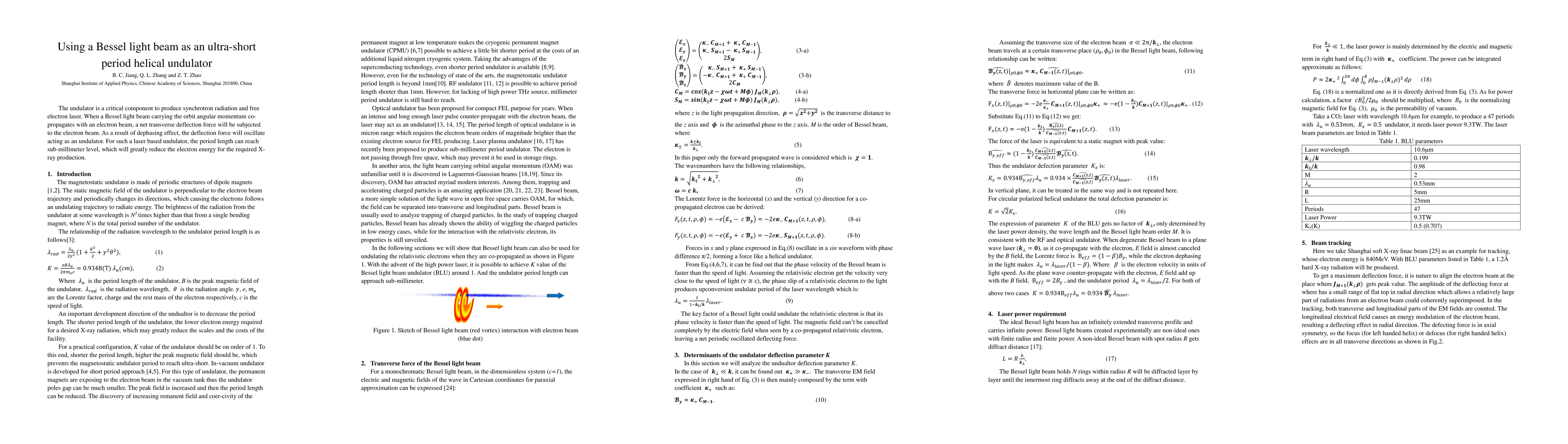 The undulator is a critical component to produce synchrotron radiation and free electron laser. When a Bessel light beam carrying the orbit angular momentum co-propagates with an electron beam, a net transverse deflection force will be subjected to the electron beam. As a result of dephasing effect, the deflection force will oscillate acting as an undulator. For such a laser based undulator, the period length can reach sub-millimeter level, which will greatly reduce the electron energy for the required X-ray production.