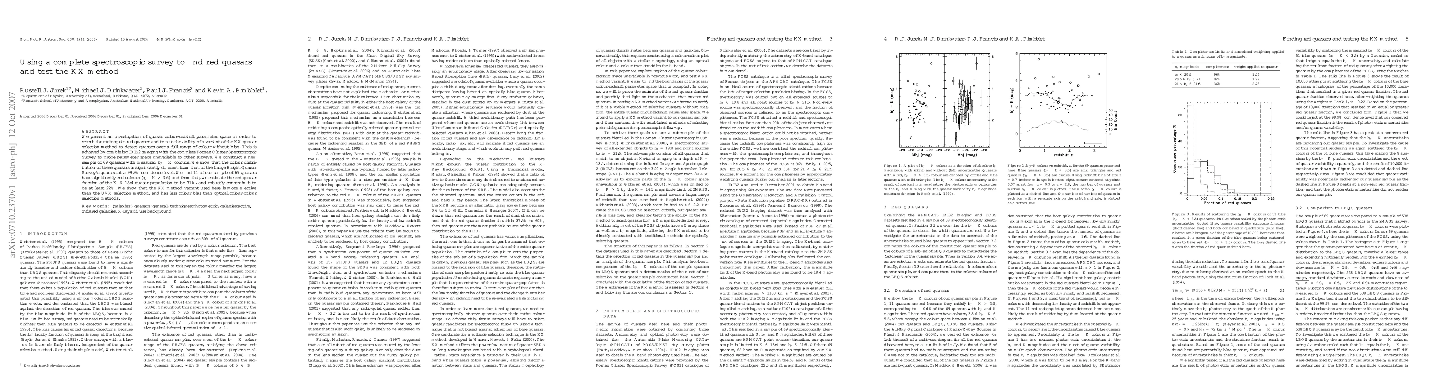 We present an investigation of quasar colour-redshift parameter space in order to search for radio-quiet red quasars and to test the ability of a variant of the KX quasar selection method to detect quasars over a full range of colour without bias. This is achieved by combining IRIS2 imaging with the complete Fornax Cluster Spectroscopic Survey to probe parameter space unavailable to other surveys. We construct a new sample of 69 quasars with measured bJ - K colours. We show that the colour distribution of these quasars is significantly different from that of the Large Bright Quasar Survey's quasars at a 99.9% confidence level. We find 11 of our sample of 69 quasars have signifcantly red colours (bJ - K >= 3.5) and from this, we estimate the red quasar fraction of the K <= 18.4 quasar population to be 31%, and robustly constrain it to be at least 22%. We show that the KX method variant used here is more effective than the UVX selection method, and has less colour bias than optical colour-colour selection methods.