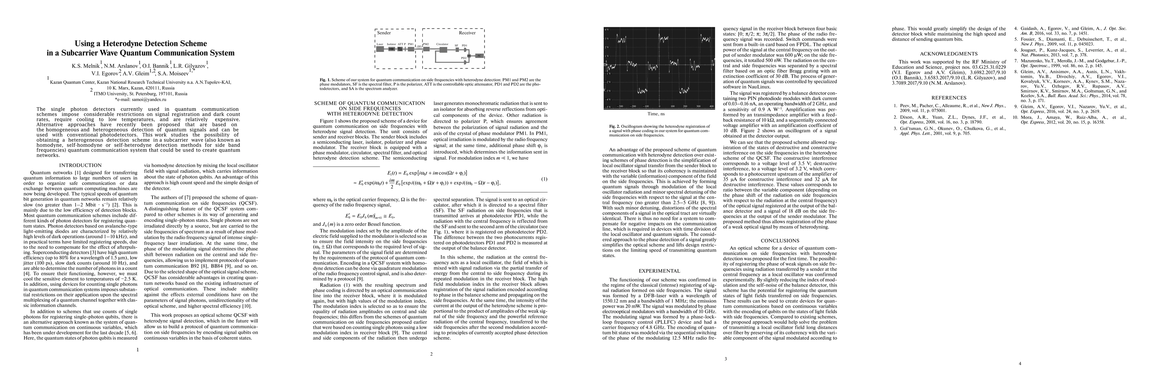 The proposed scheme uses a heterodyne detection method for side band frequencies in a subcarrier wave quantum communication system.