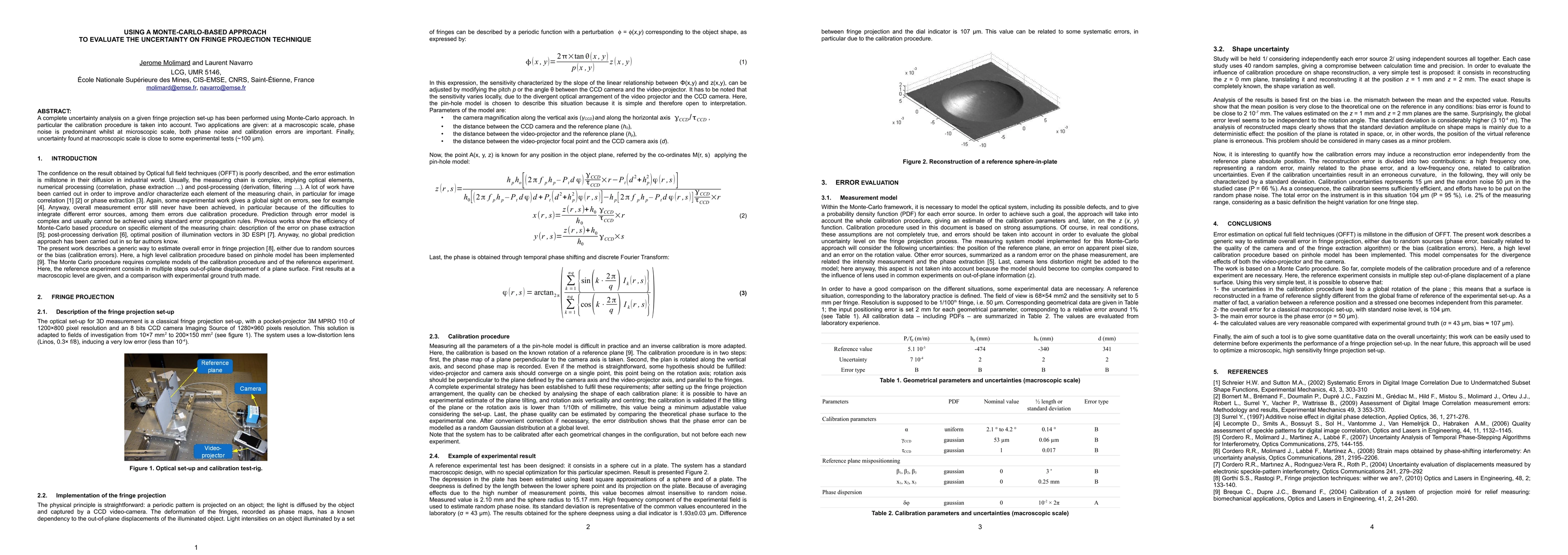 Researchers used a Monte-Carlo approach to analyze uncertainty in fringe projection techniques, finding that phase noise is more significant at macroscopic scales while calibration errors matter at microscopic scales.