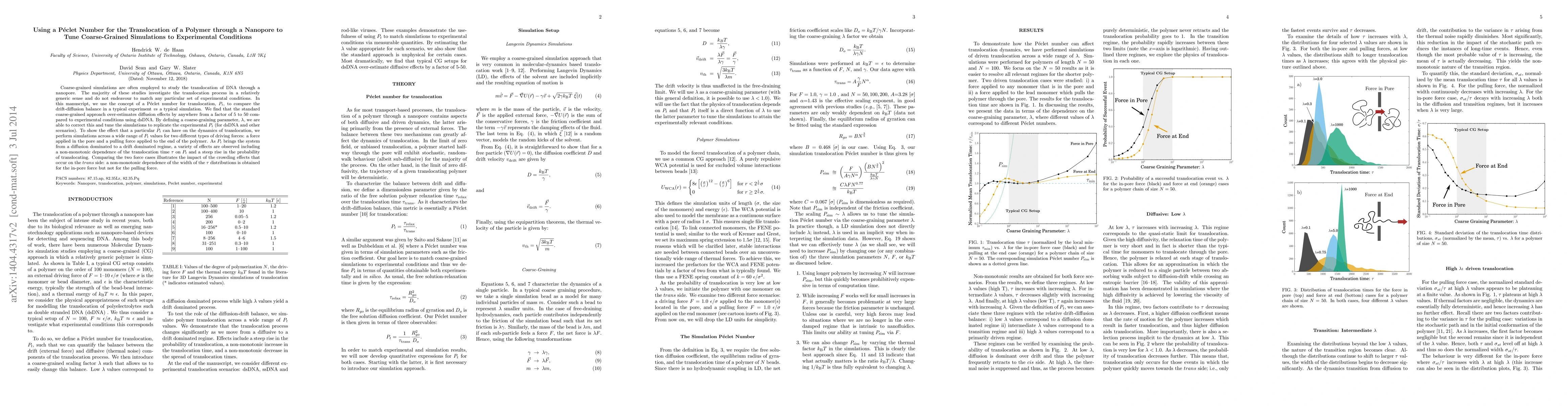 Coarse-grained simulations are often employed to study the translocation of DNA through a nanopore. The majority of these studies investigate the translocation process in a relatively generic sense and do not endeavour to match any particular set of experimental conditions. In this manuscript, we use the concept of a P\'eclet number for translocation, $P_t$, to compare the drift-diffusion balance in a typical experiment vs a typical simulation. We find that the standard coarse-grained approach over-estimates diffusion effects by anywhere from a factor of 5 to 50 compared to experimental conditions using dsDNA. By defining a coarse-graining parameter, $\lambda$, we are able to correct this and tune the simulations to replicate the experimental $P_t$ (for dsDNA and other scenarios). To show the effect that a particular $P_t$ can have on the dynamics of translocation, we perform simulations across a wide range of $P_t$ values for two different types of driving forces: a force applied in the pore and a pulling force applied to the end of the polymer. As $P_t$ brings the system from a diffusion dominated to a drift dominated regime, a variety of effects are observed including a non-monotonic dependence of the translocation time $\tau$ on $P_t$ and a steep rise in the probability of translocating. Comparing the two force cases illustrates the impact of the crowding effects that occur on the trans side: a non-monotonic dependence of the width of the $\tau$ distributions is obtained for the in-pore force but not for the pulling force.