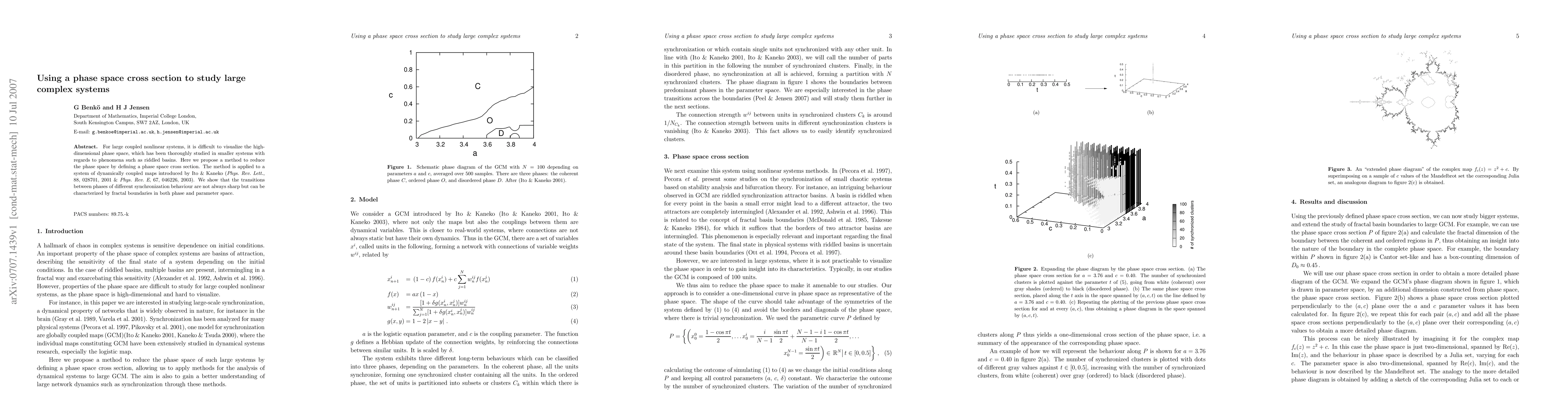 This study introduces a method to visualize large complex systems by reducing their high-dimensional phase space to a 2D cross-section. It reveals that transitions between different synchronization behaviors can be characterized by fractal boundaries in both phase and parameter space.