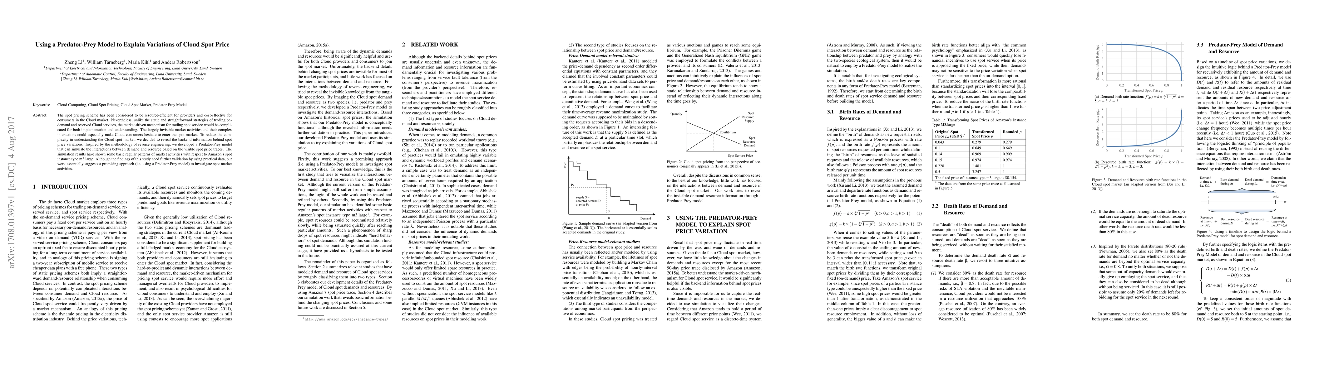This paper uses a Predator-Prey model to simulate and explain the complex interactions behind variations in cloud spot prices, aiming to simplify understanding of the market-driven mechanism. Initial results show basic patterns in Amazon's m3.large spot instance type, suggesting a promising approach for further investigation.