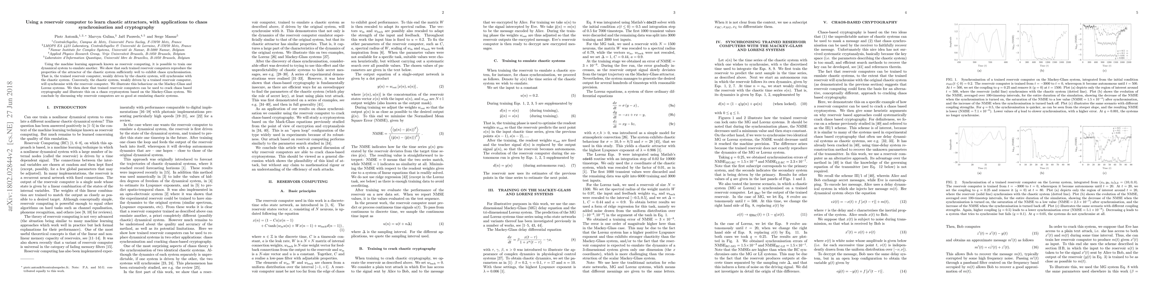 This paper demonstrates how reservoir computing can emulate chaotic attractors, achieving chaos synchronisation between trained reservoir computers and chaotic systems like the Mackey-Glass and Lorenz. It also shows that trained reservoir computers can break chaos-based cryptography, highlighting their potential in both synchronisation and security applications.