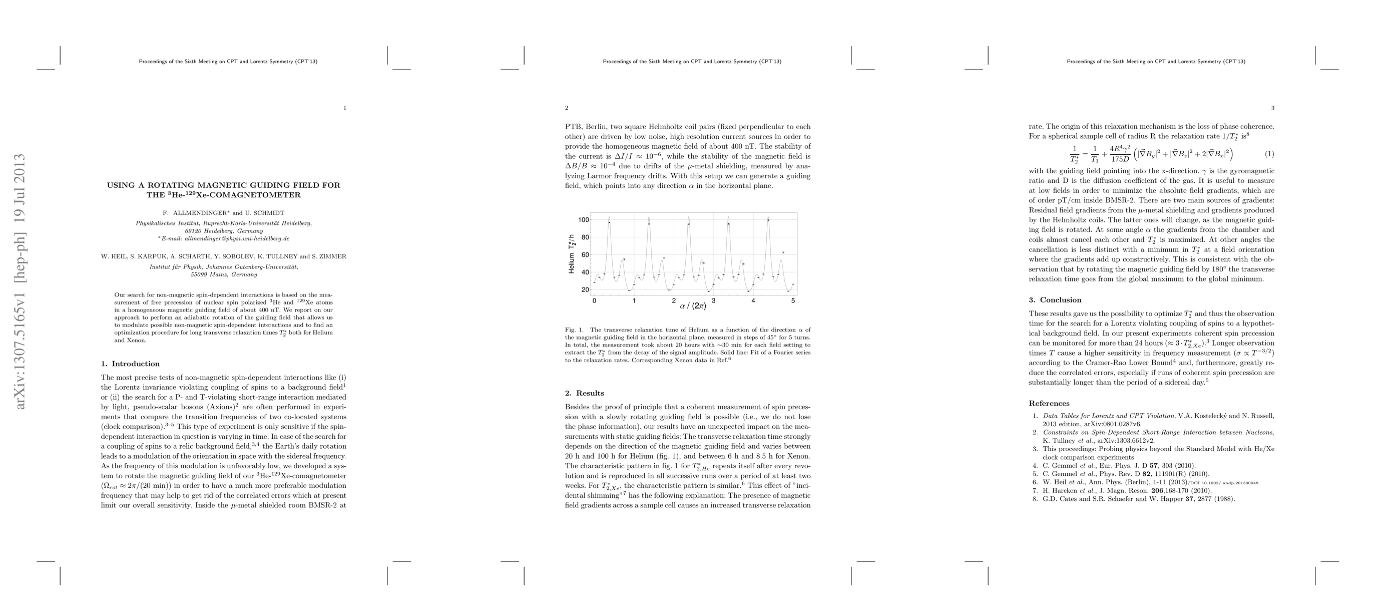 Researchers used a rotating magnetic field to study non-magnetic spin-dependent interactions in helium and xenon atoms, finding an optimization procedure for extended relaxation times.