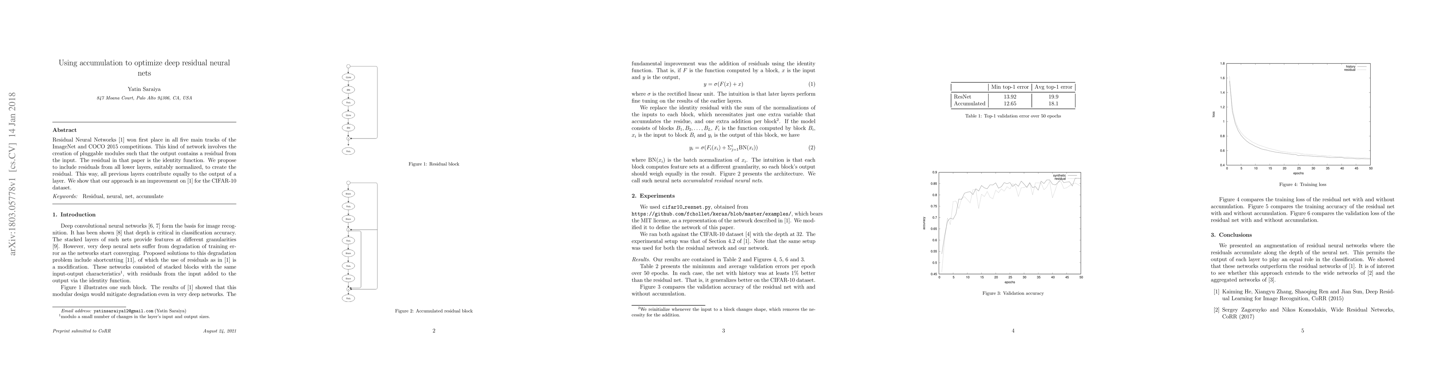 Residual Neural Networks [1] won first place in all five main tracks of the ImageNet and COCO 2015 competitions. This kind of network involves the creation of pluggable modules such that the output contains a residual from the input. The residual in that paper is the identity function. We propose to include residuals from all lower layers, suitably normalized, to create the residual. This way, all previous layers contribute equally to the output of a layer. We show that our approach is an improvement on [1] for the CIFAR-10 dataset.