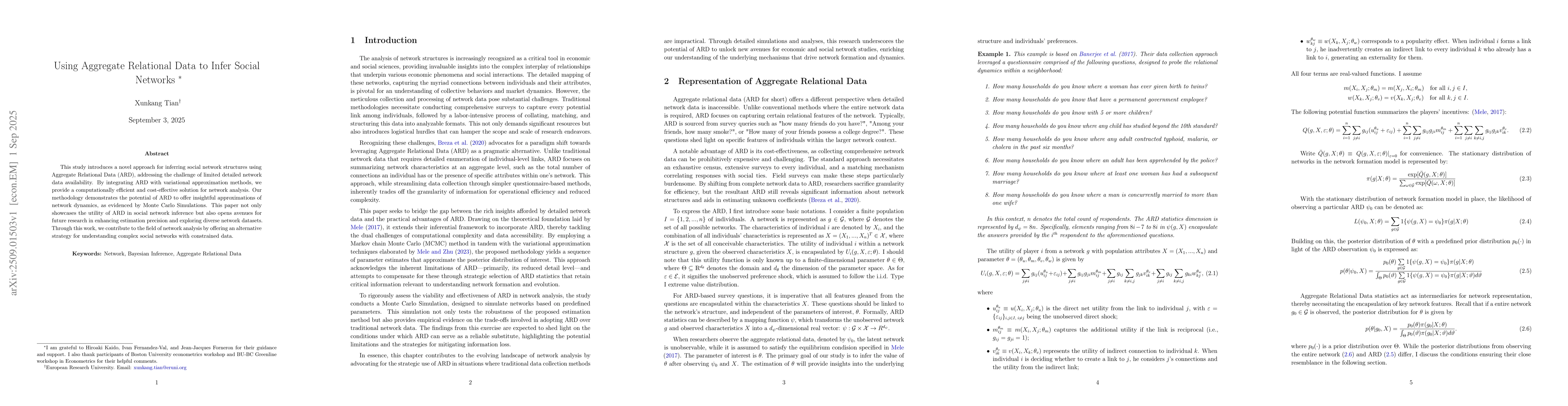 This study introduces a novel approach for inferring social network structures using Aggregate Relational Data (ARD), addressing the challenge of limited detailed network data availability. By integrating ARD with variational approximation methods, we provide a computationally efficient and cost-effective solution for network analysis. Our methodology demonstrates the potential of ARD to offer insightful approximations of network dynamics, as evidenced by Monte Carlo Simulations. This paper not only showcases the utility of ARD in social network inference but also opens avenues for future research in enhancing estimation precision and exploring diverse network datasets. Through this work, we contribute to the field of network analysis by offering an alternative strategy for understanding complex social networks with constrained data.