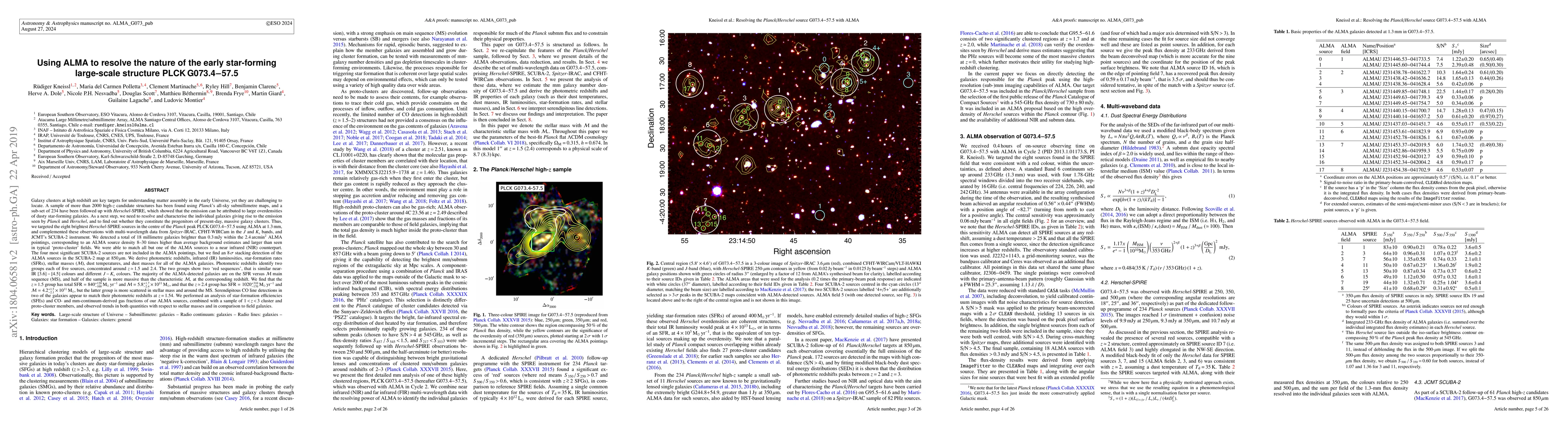 Planck peak PLCK G073.4-57.5 using ALMA at 1.3 mm, and complemented these