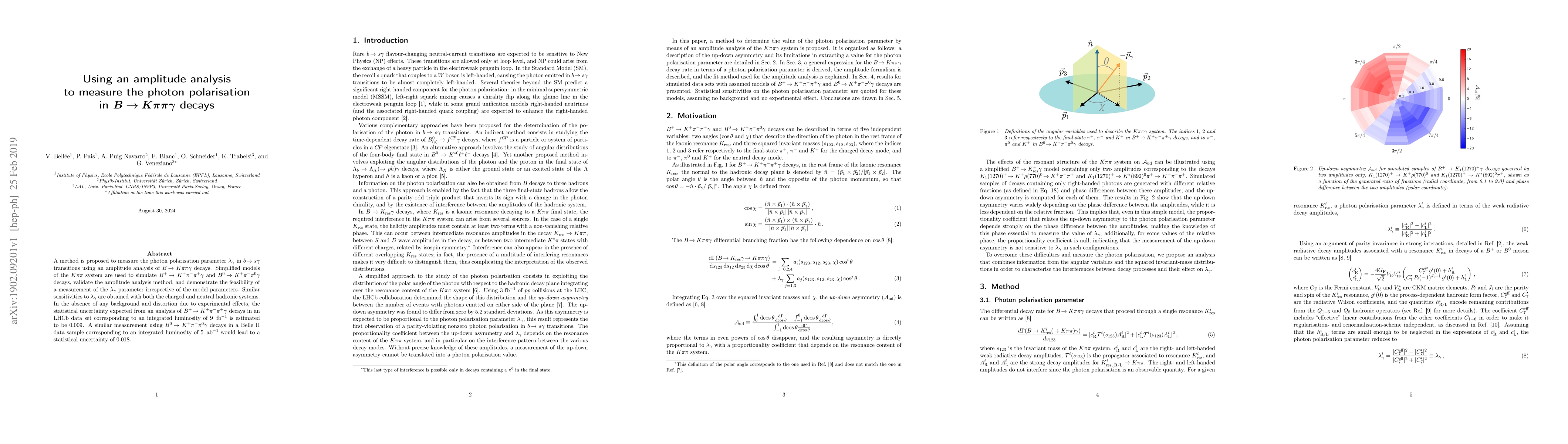 The paper presents a novel method to measure the photon polarisation parameter λγ in B→Kππγ decays using amplitude analysis, which could provide complementary information to other observables in constraining Wilson coefficients.