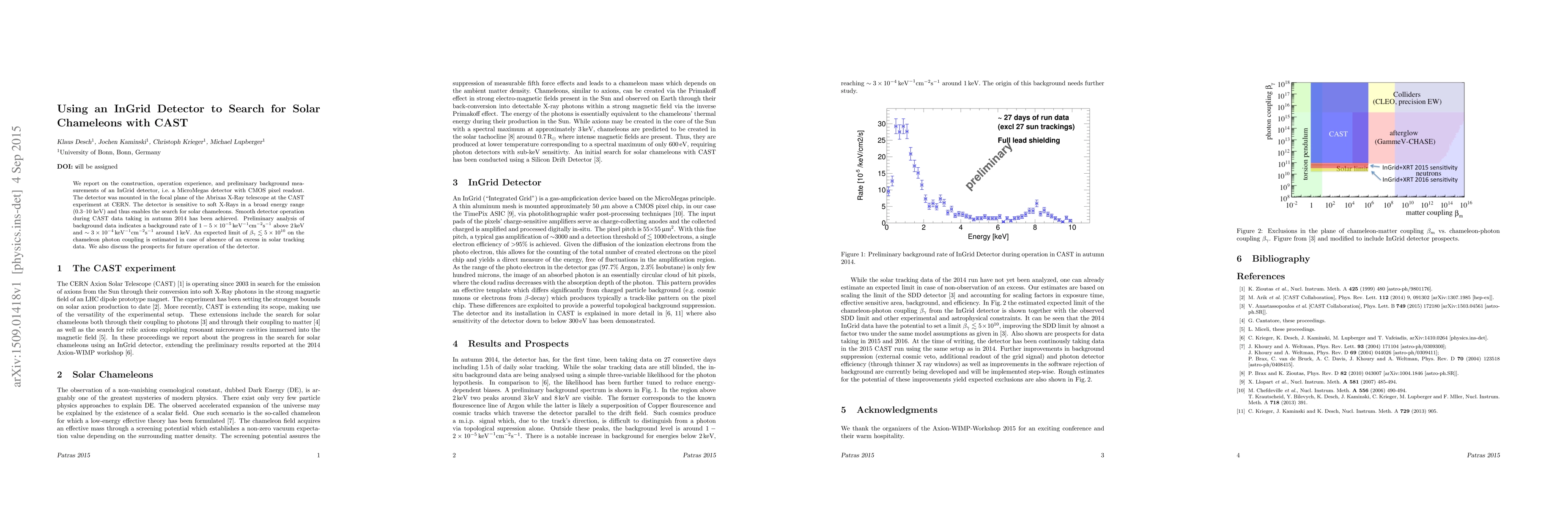 Researchers have successfully operated an InGrid detector to search for solar chameleons, achieving a background rate of $1-5 imes 10^{-5} ext{ keV}^{-1} ext{cm}^{-2} ext{s}^{-1}$ and estimating a limit on chameleon photon coupling of $eta_ u lesssim 5 imes 10^{10}$.