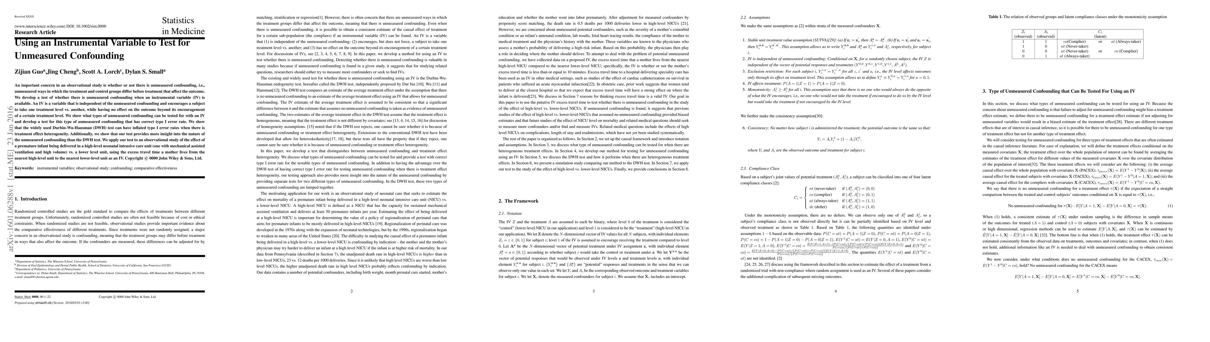 This paper develops a test for unmeasured confounding in observational studies using an instrumental variable (IV) that is independent of unmeasured confounding and influences treatment assignment. The proposed test offers more accurate results and insight compared to the Durbin-Wu-Hausman test, especially when treatment effect heterogeneity is present.