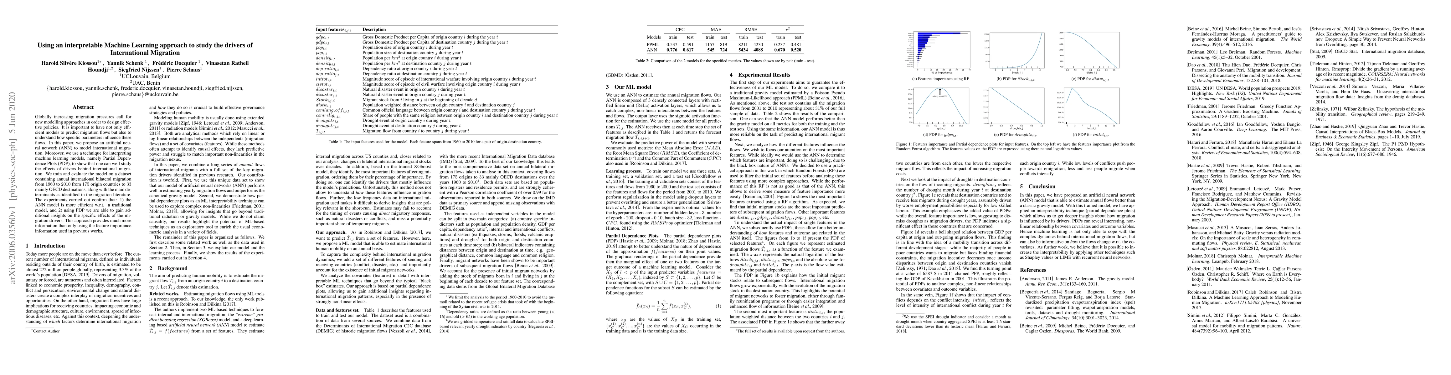 This paper proposes an artificial neural network (ANN) to model international migration, demonstrating its efficiency over traditional models. It employs Partial Dependence Plots (PDP) to interpret the model, providing deeper insights into the specific effects of migration drivers beyond traditional feature importance measures.