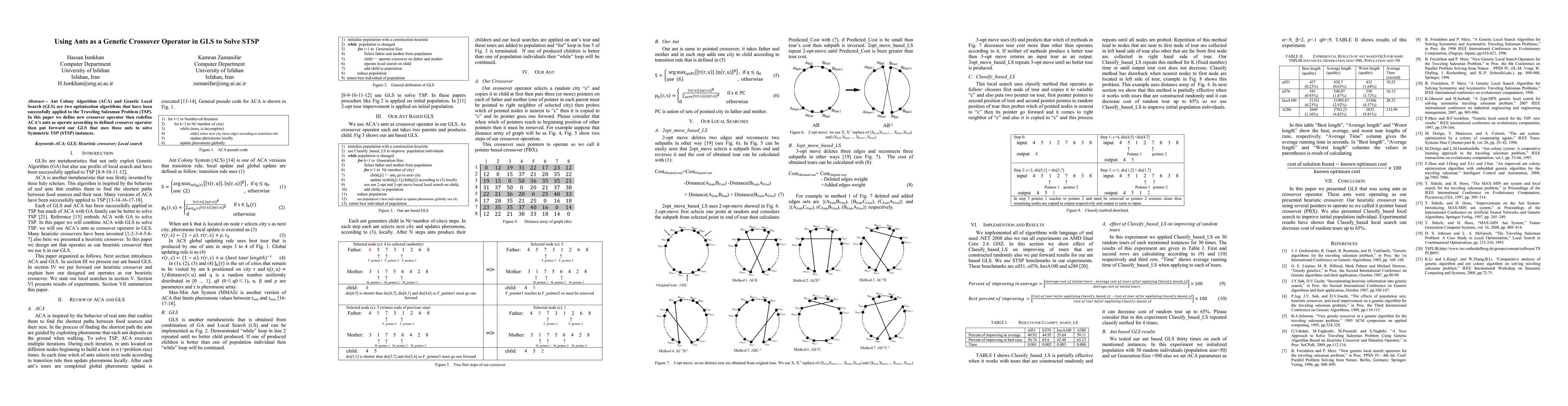 Ant Colony Algorithm (ACA) and Genetic Local Search (GLS) are two optimization algorithms that have been successfully applied to the Traveling Salesman Problem (TSP). In this paper we define new crossover operator then redefine ACAs ants as operate according to defined crossover operator then put forward our GLS that uses these ants to solve Symmetric TSP (STSP) instances.