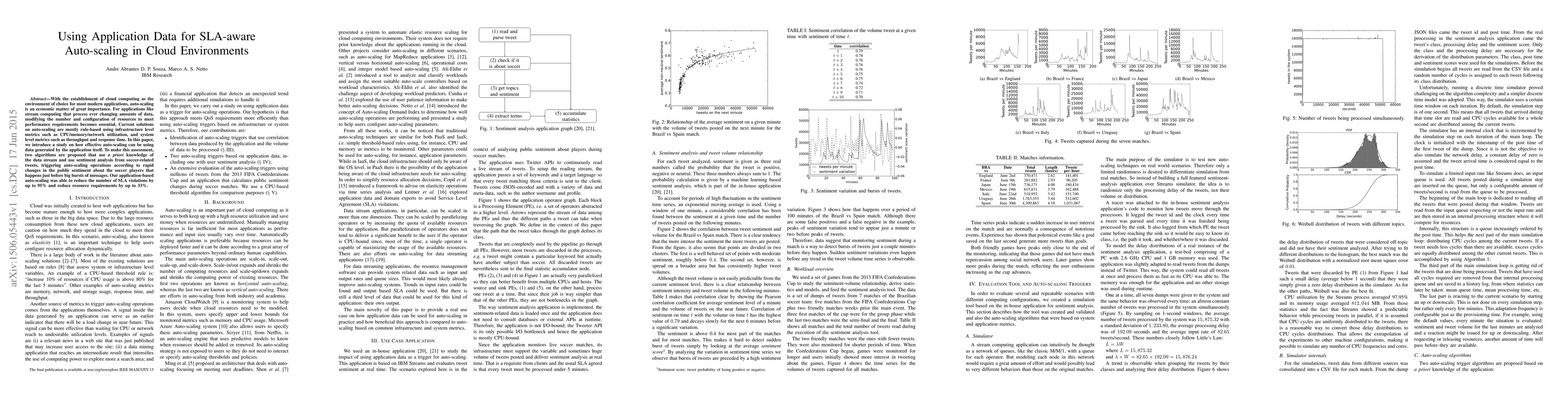 This paper proposes two algorithms for SLA-aware auto-scaling in cloud environments that utilize application-generated data, specifically sentiment analysis from soccer-related tweets, to trigger scaling operations. The approach significantly reduces SLA violations and resource usage by up to 95% and 33%, respectively.