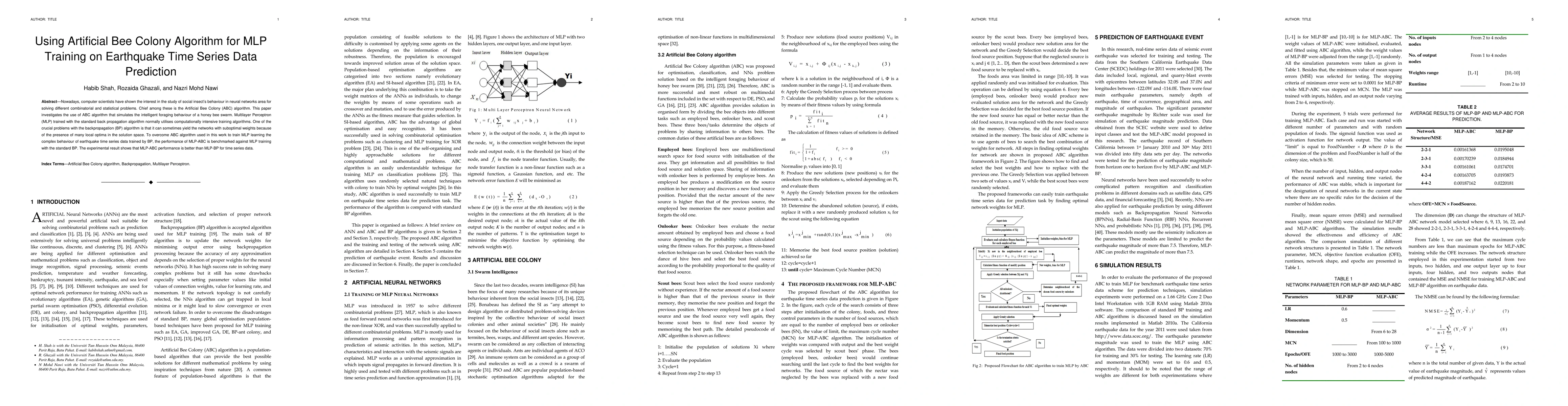 Nowadays, computer scientists have shown the interest in the study of social insect's behaviour in neural networks area for solving different combinatorial and statistical problems. Chief among these is the Artificial Bee Colony (ABC) algorithm. This paper investigates the use of ABC algorithm that simulates the intelligent foraging behaviour of a honey bee swarm. Multilayer Perceptron (MLP) trained with the standard back propagation algorithm normally utilises computationally intensive training algorithms. One of the crucial problems with the backpropagation (BP) algorithm is that it can sometimes yield the networks with suboptimal weights because of the presence of many local optima in the solution space. To overcome ABC algorithm used in this work to train MLP learning the complex behaviour of earthquake time series data trained by BP, the performance of MLP-ABC is benchmarked against MLP training with the standard BP. The experimental result shows that MLP-ABC performance is better than MLP-BP for time series data.